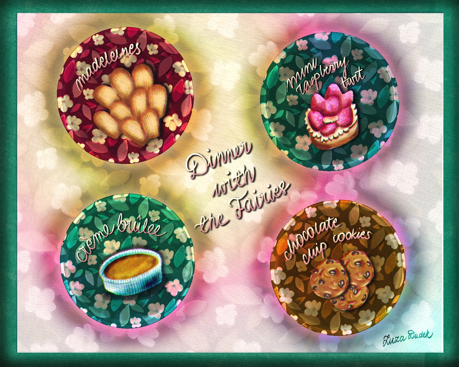 Title: \"Dinner with the Fairies\" ceramic plates illustration || Name: Zuza Dudek || Website/Social media