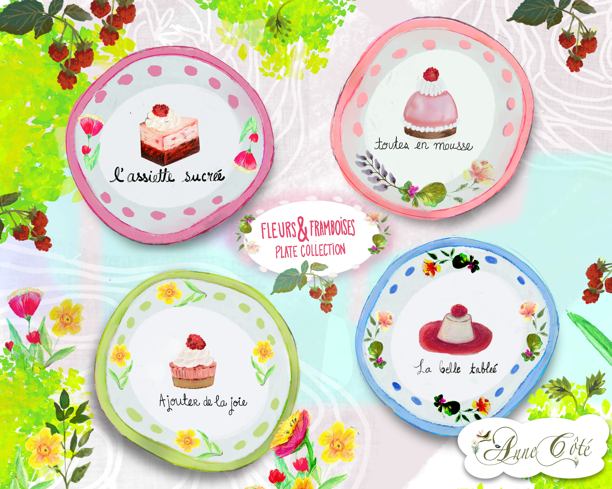 Title: Framboises &Fleurs plate collections || Name: Anne Cote || Website/Social media