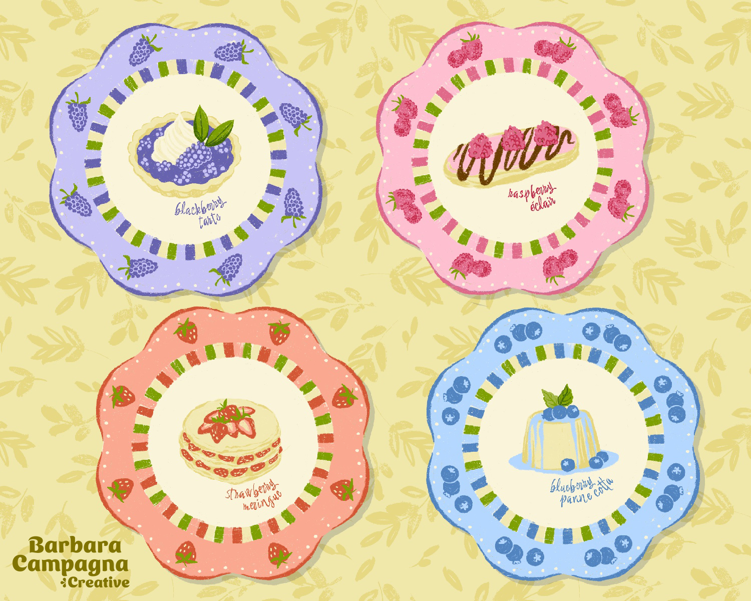 Title: Berry Delicious Dessert Plates || Name: Barbara Campagna || Website/Social media