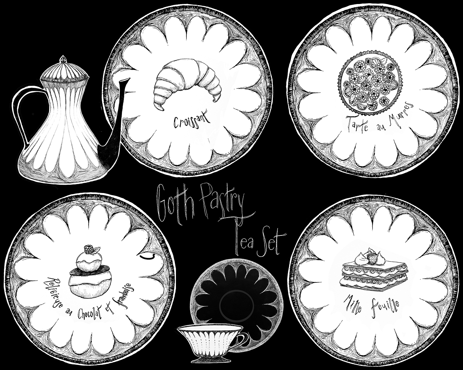 Title: Goth Pastry Tea Set || Name: Francisca Alsua || Website/Social media