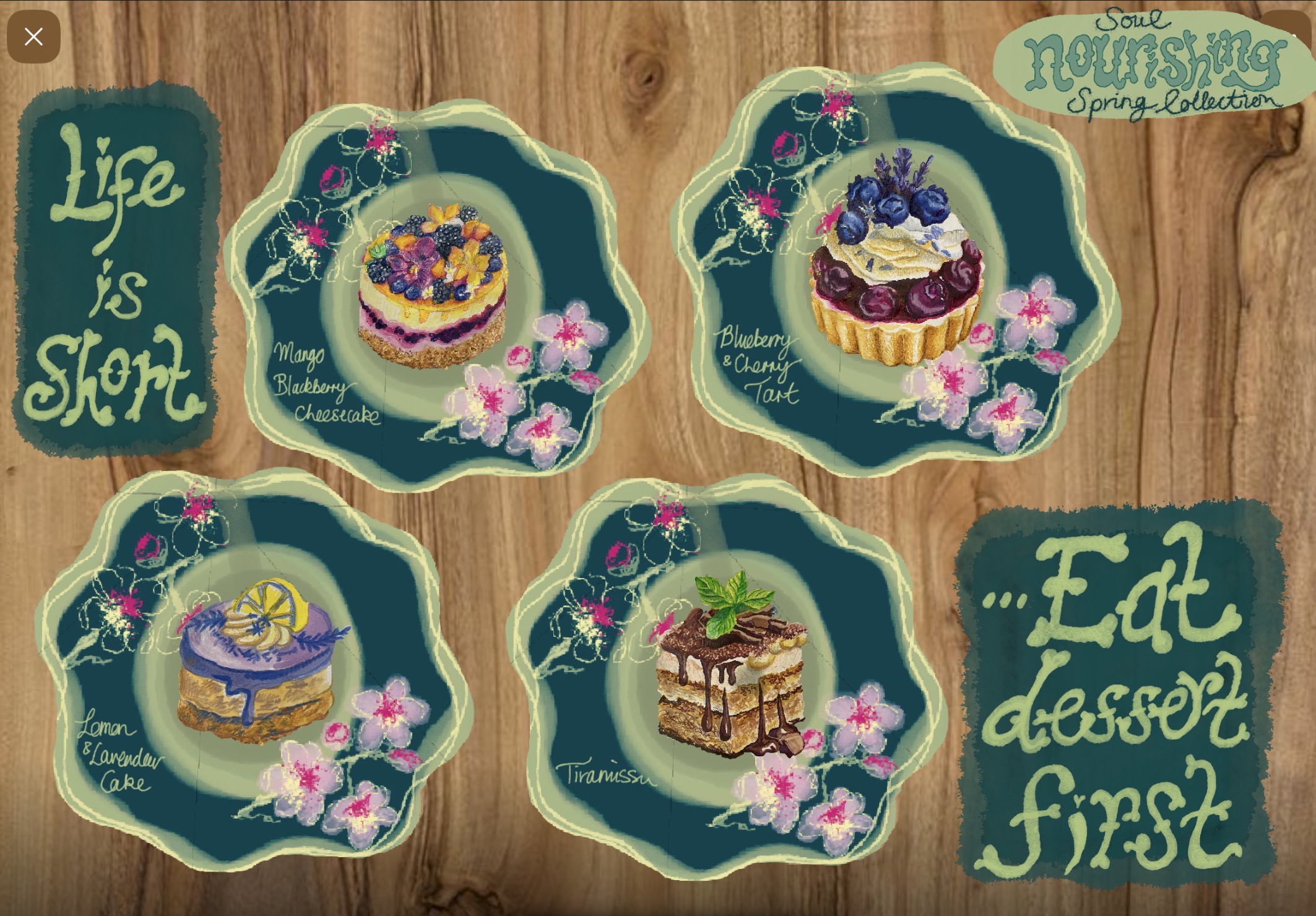 Title: Bloomy Sweets Dessert Collection || Name: Jane Archer || Website/Social media
