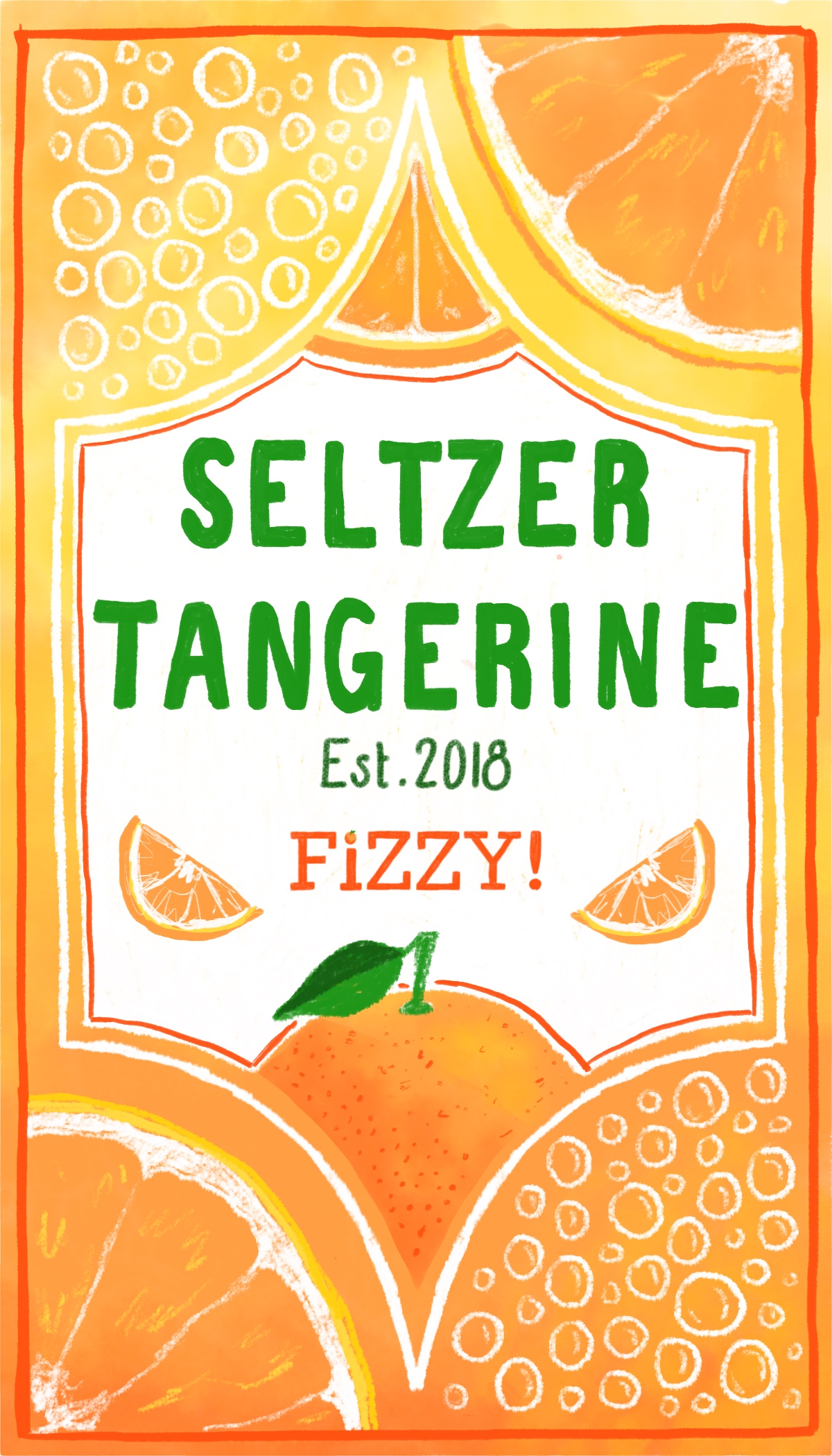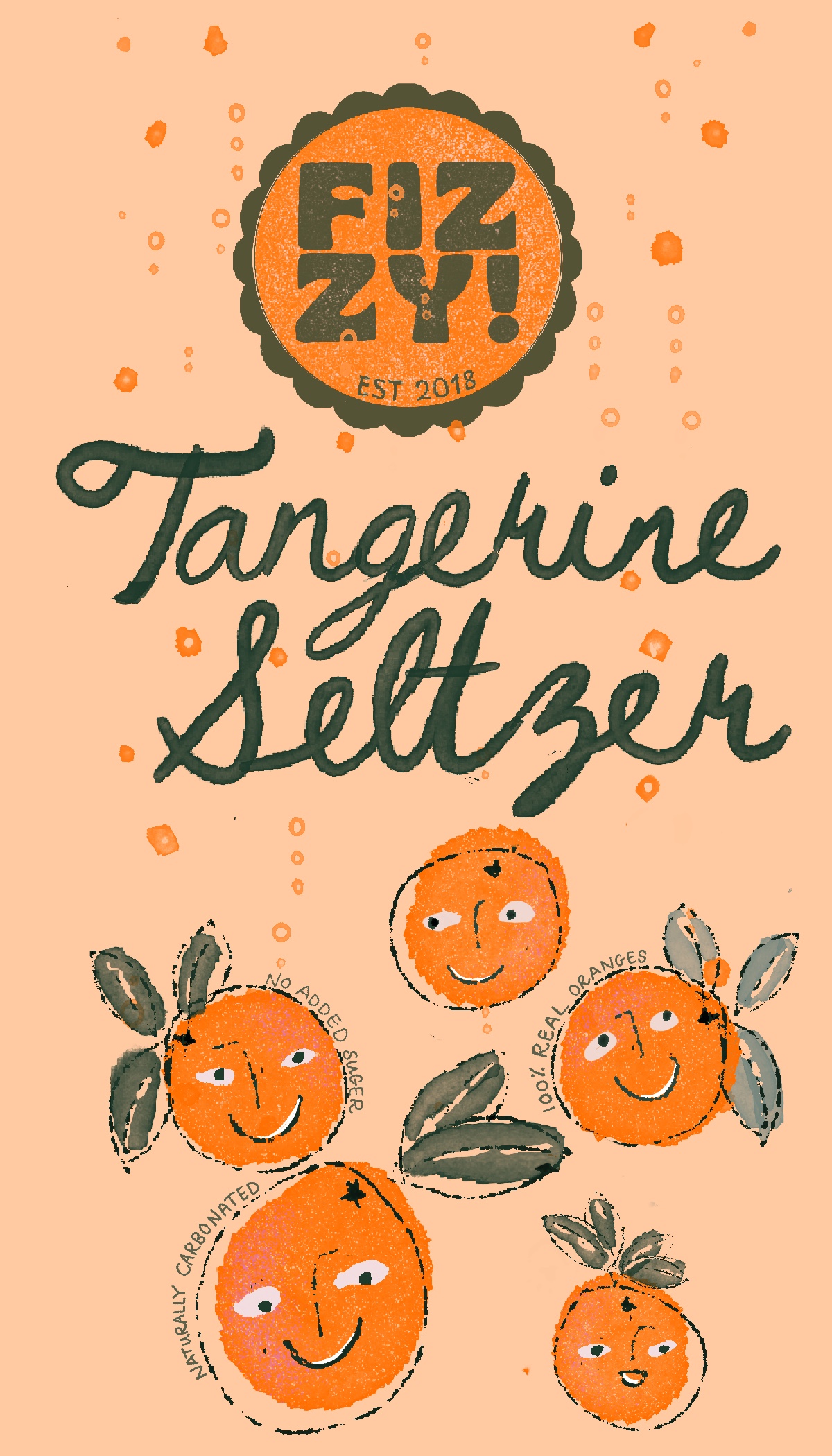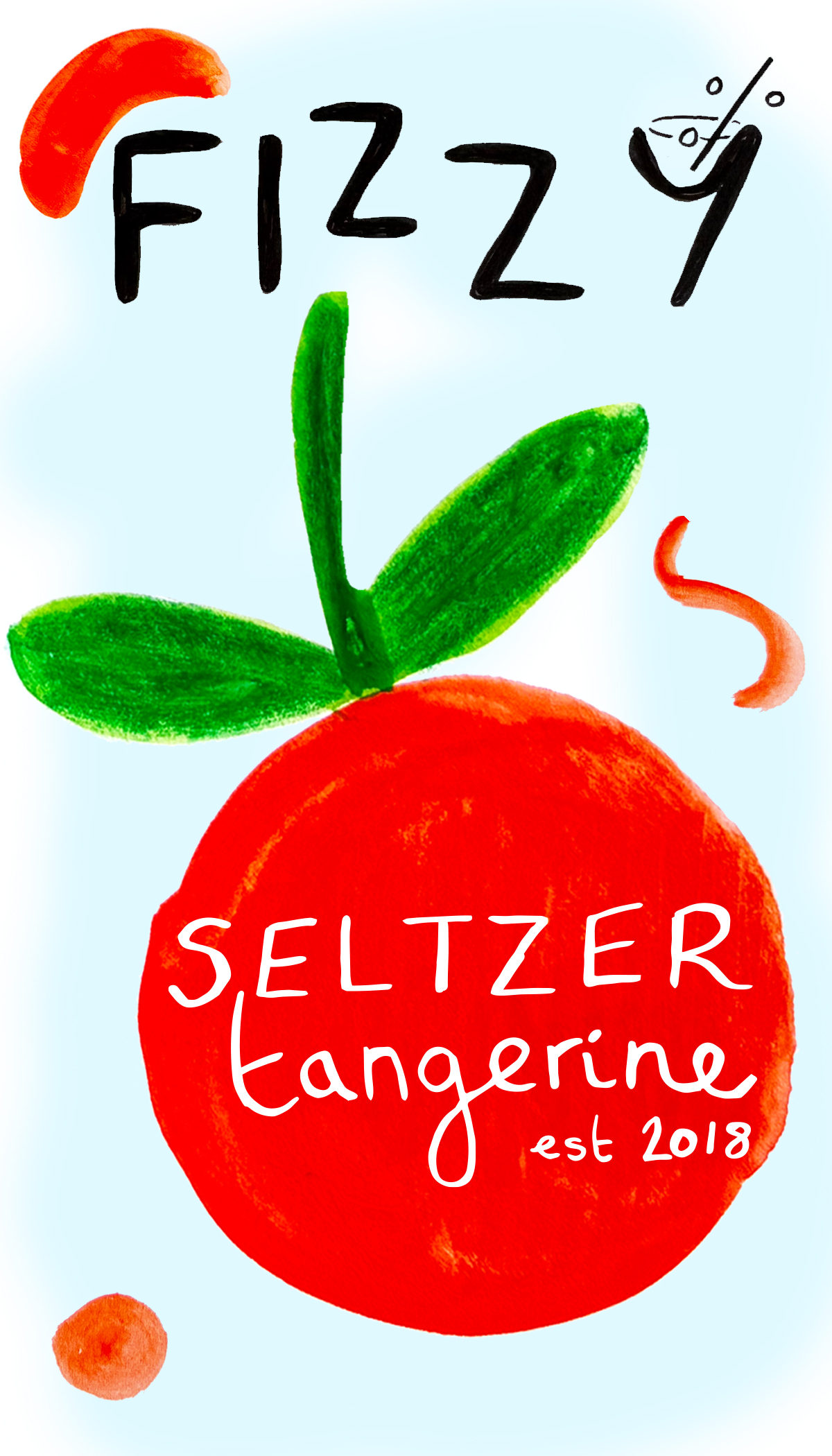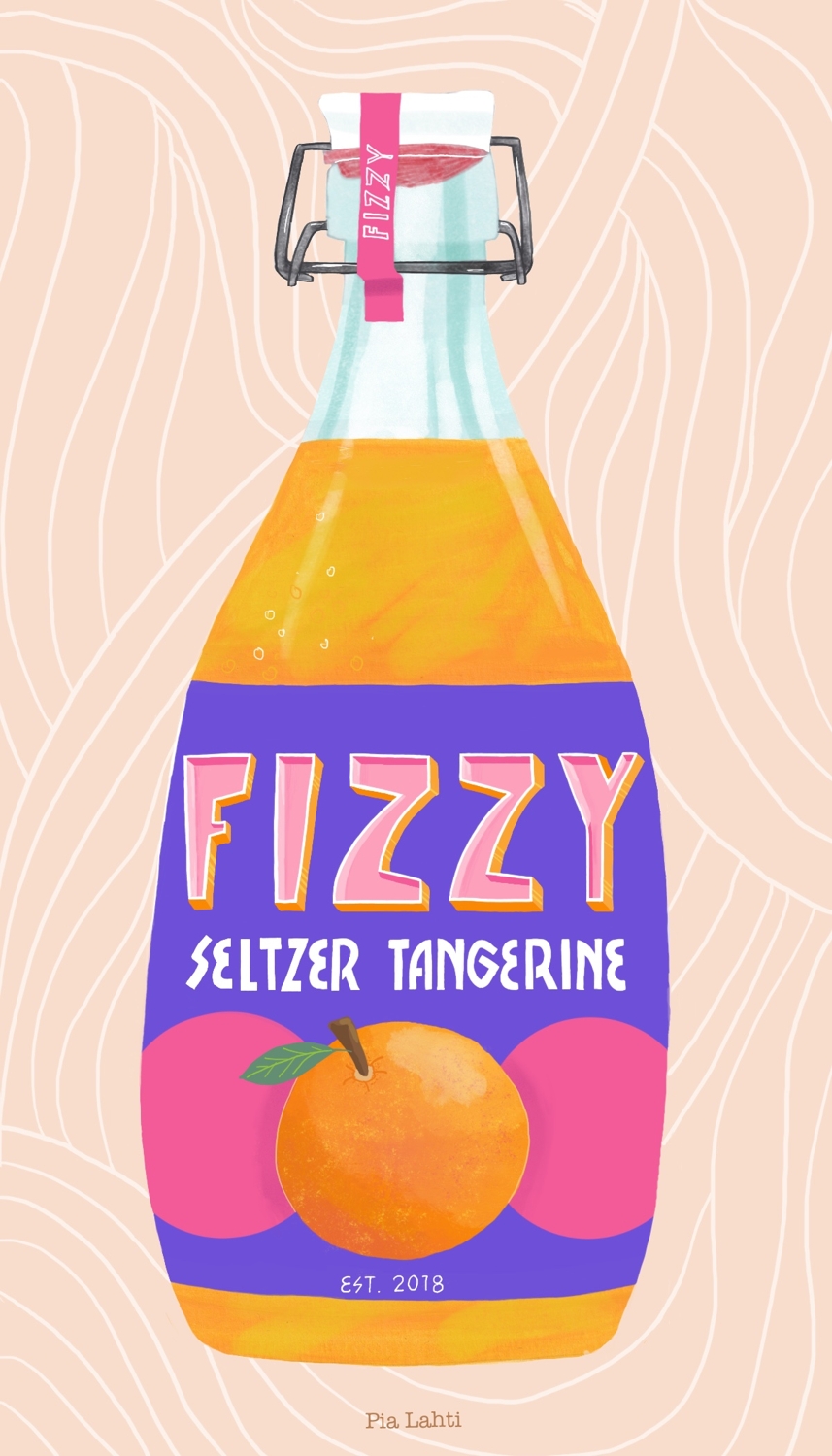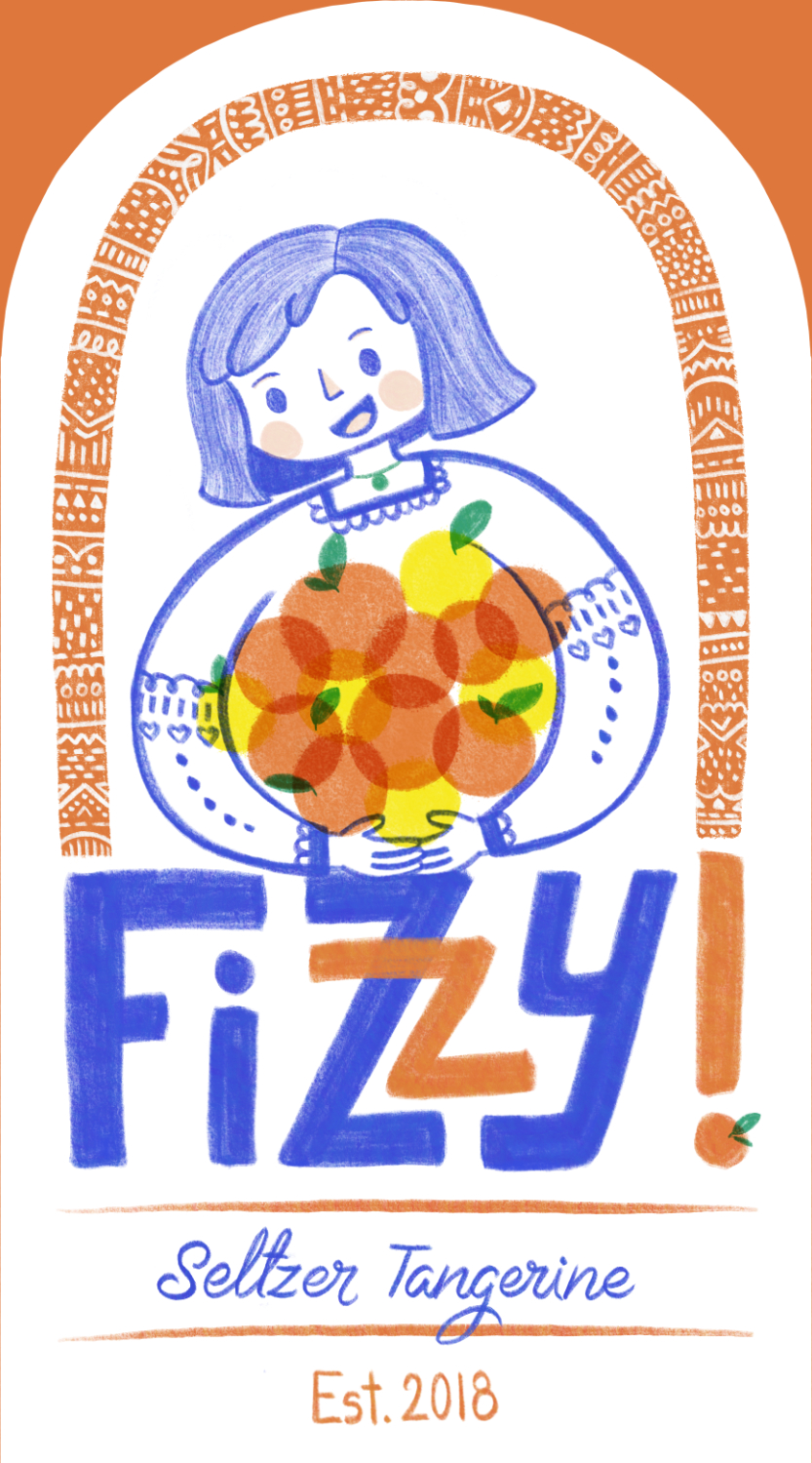 Title: Beverage label illustration - Fizzy! Seltzer Tangerine || Name: Zuza Dudek || Website/Social media