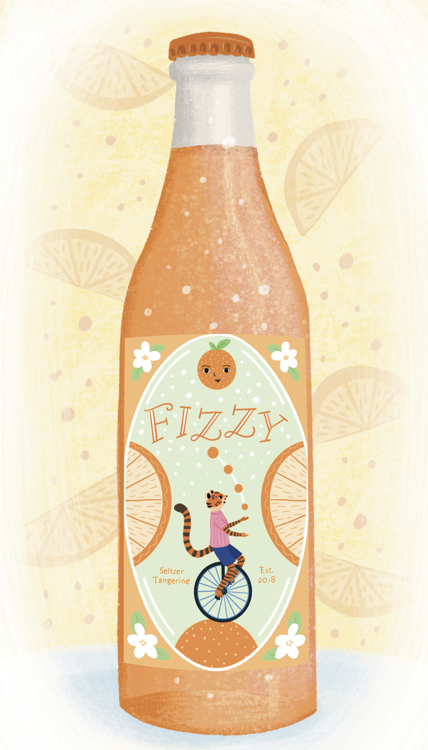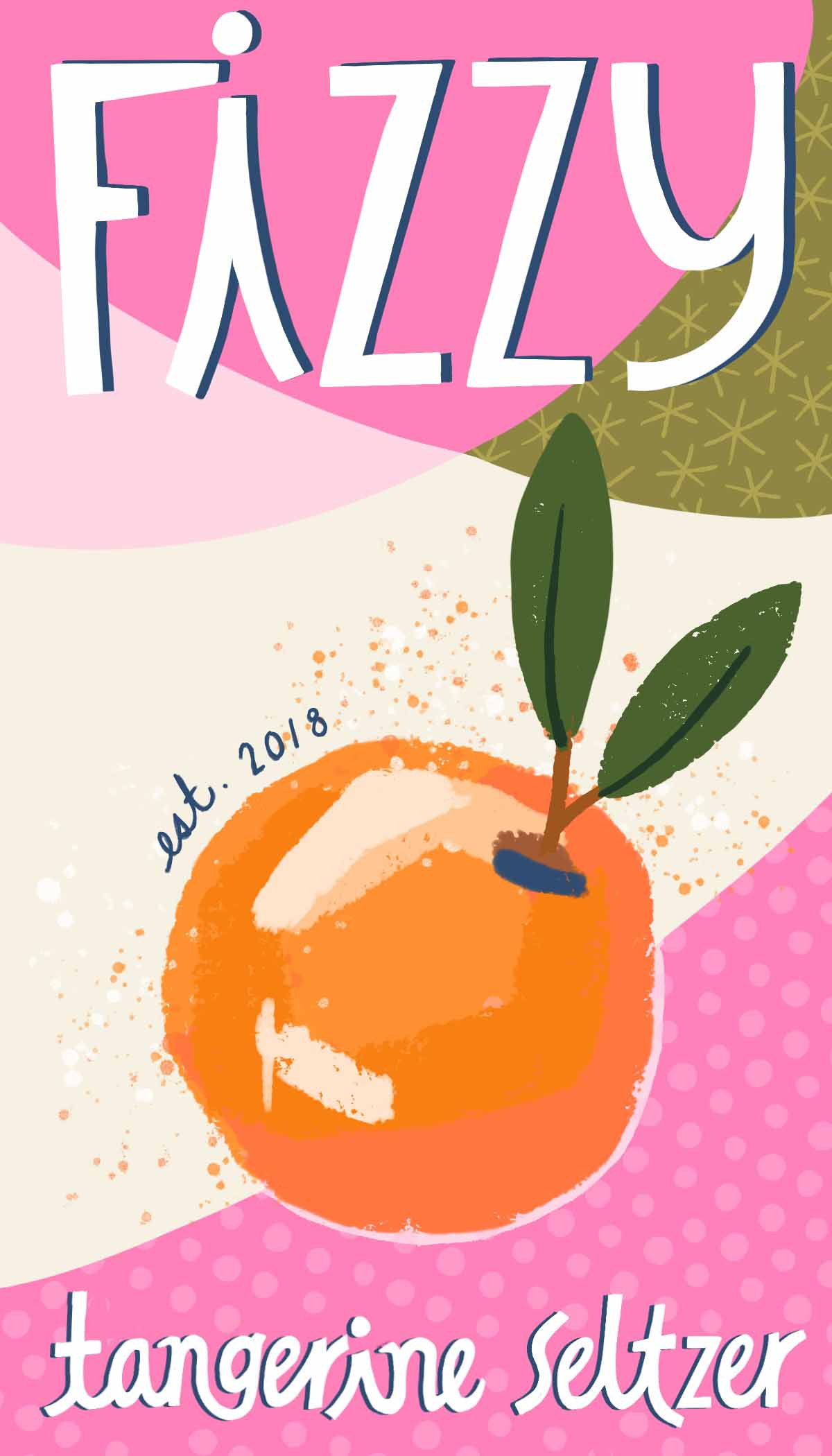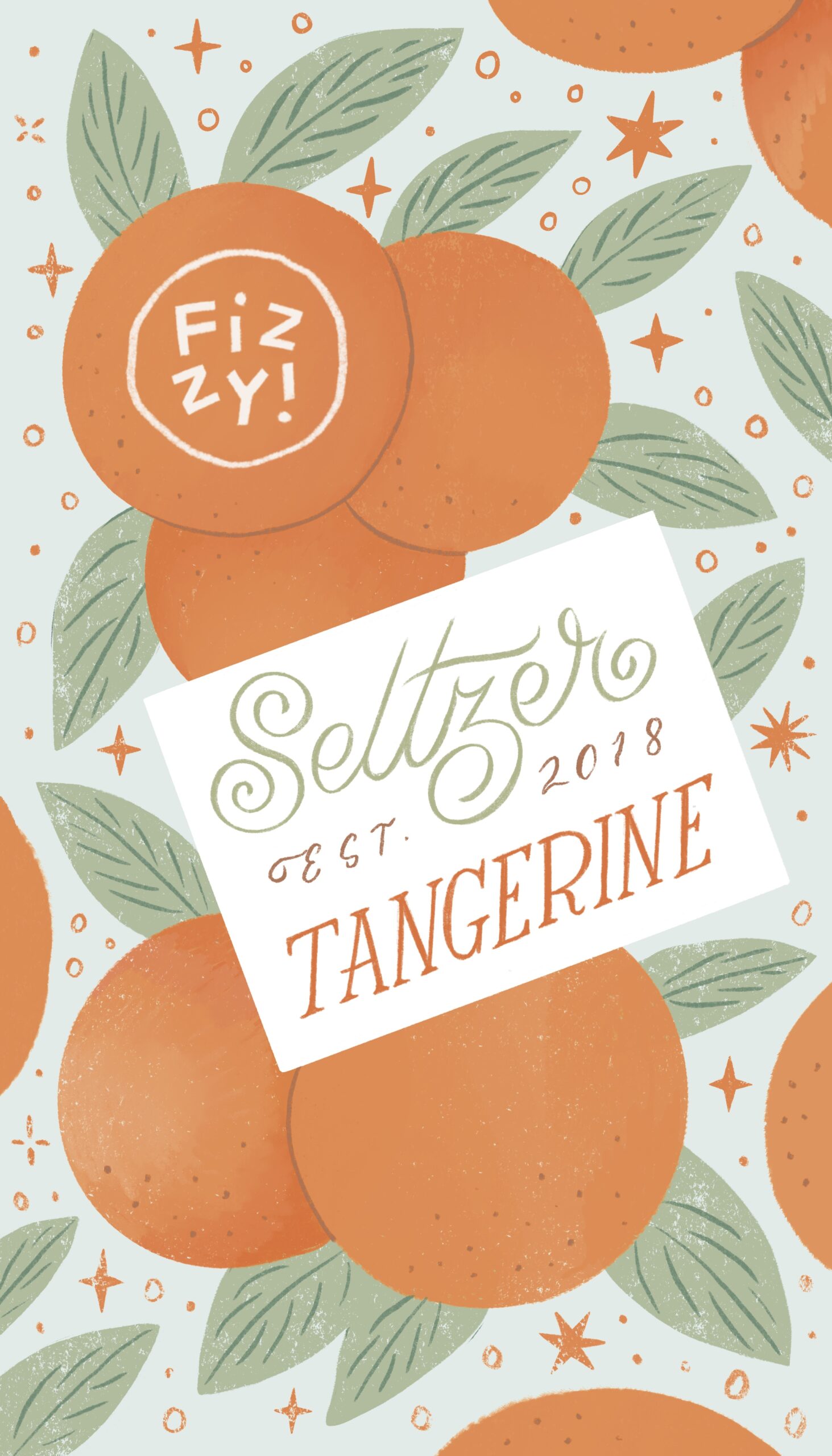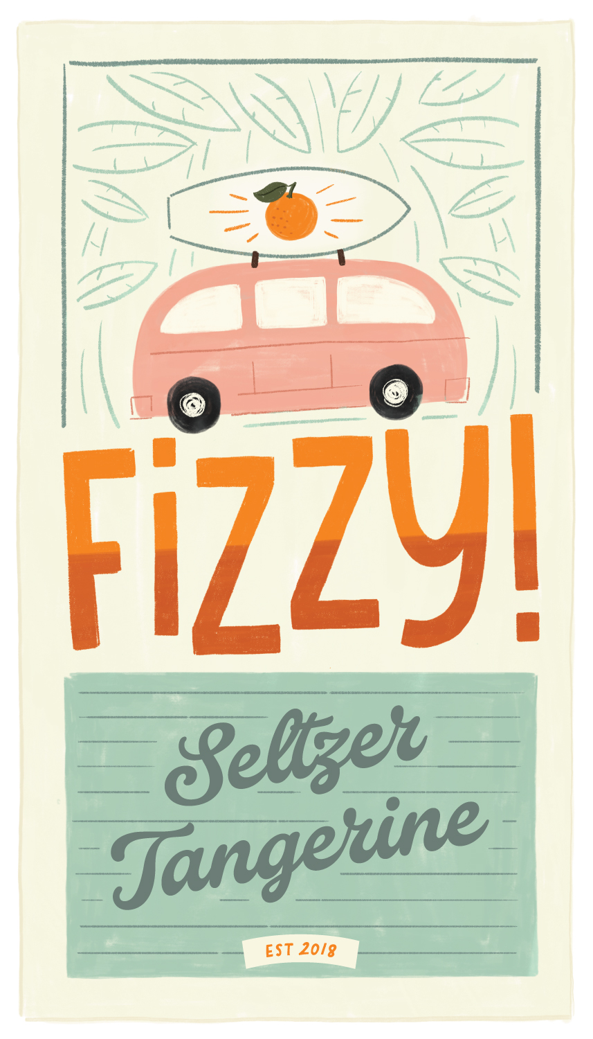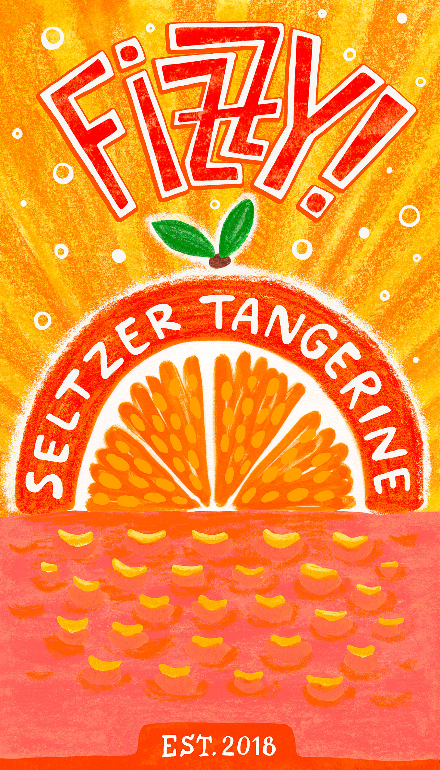 Title: Beverage label illustration - Fizzy! Seltzer Tangerine || Name: Zuza Dudek || Website/Social media