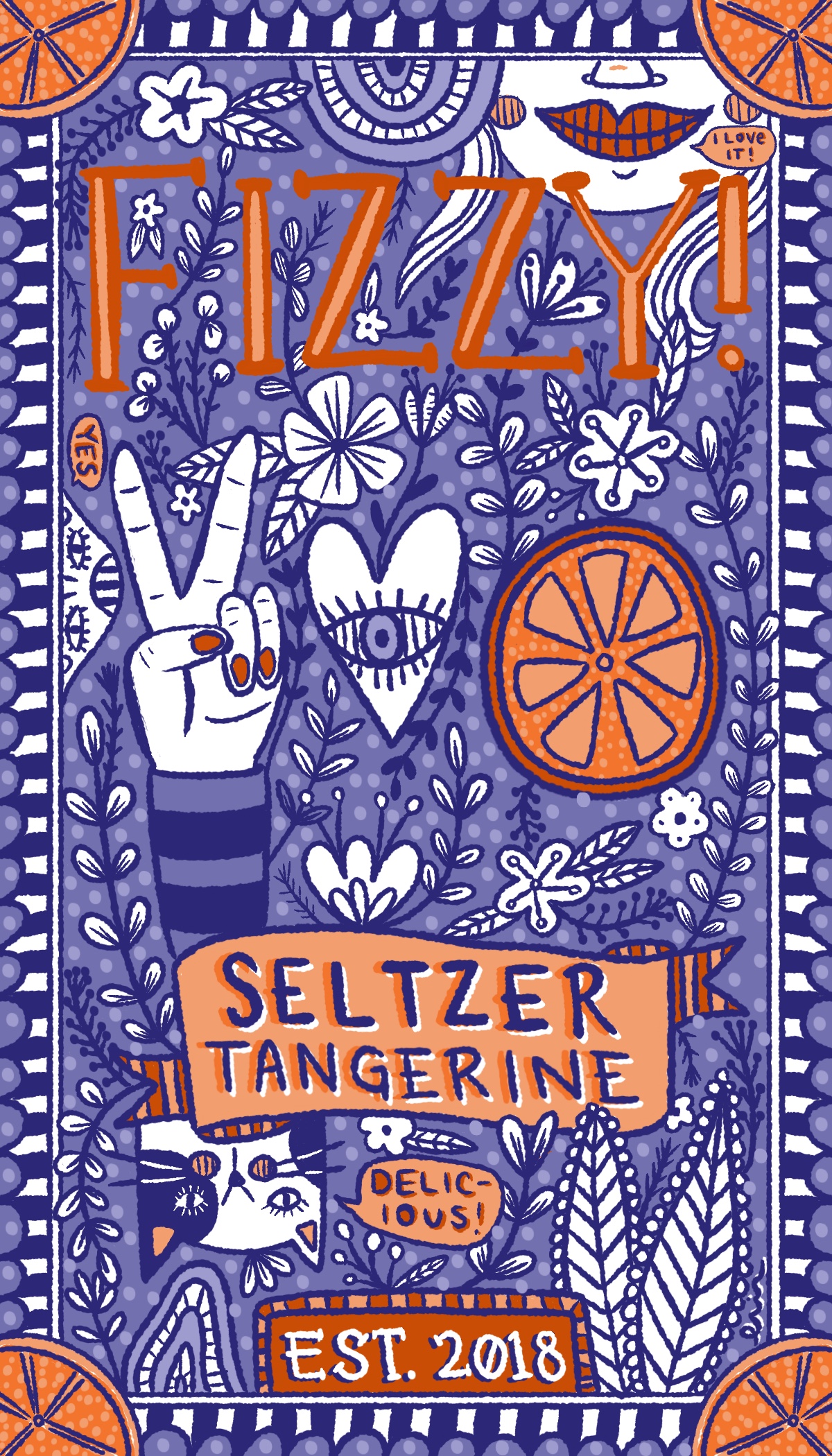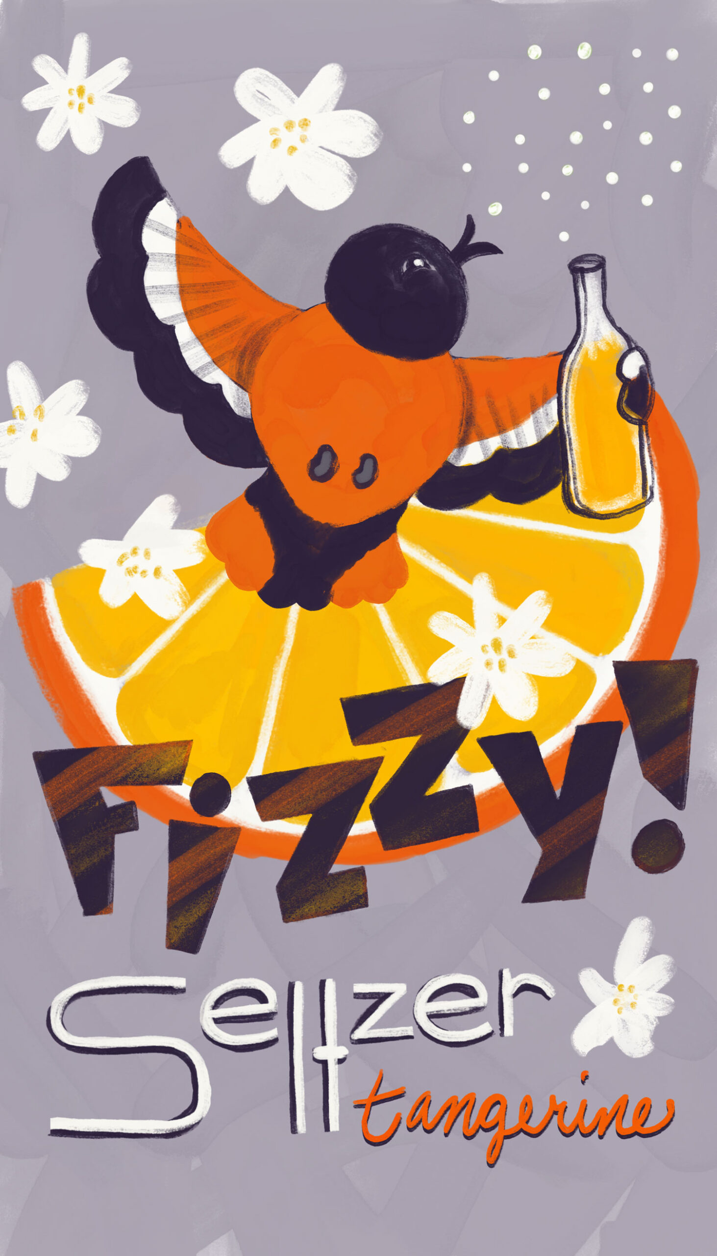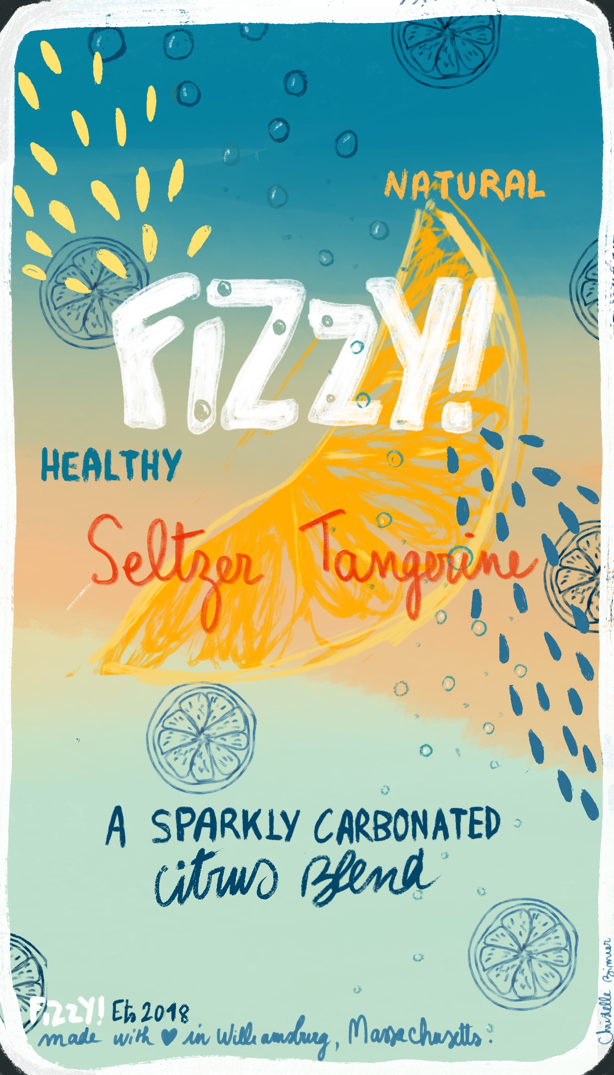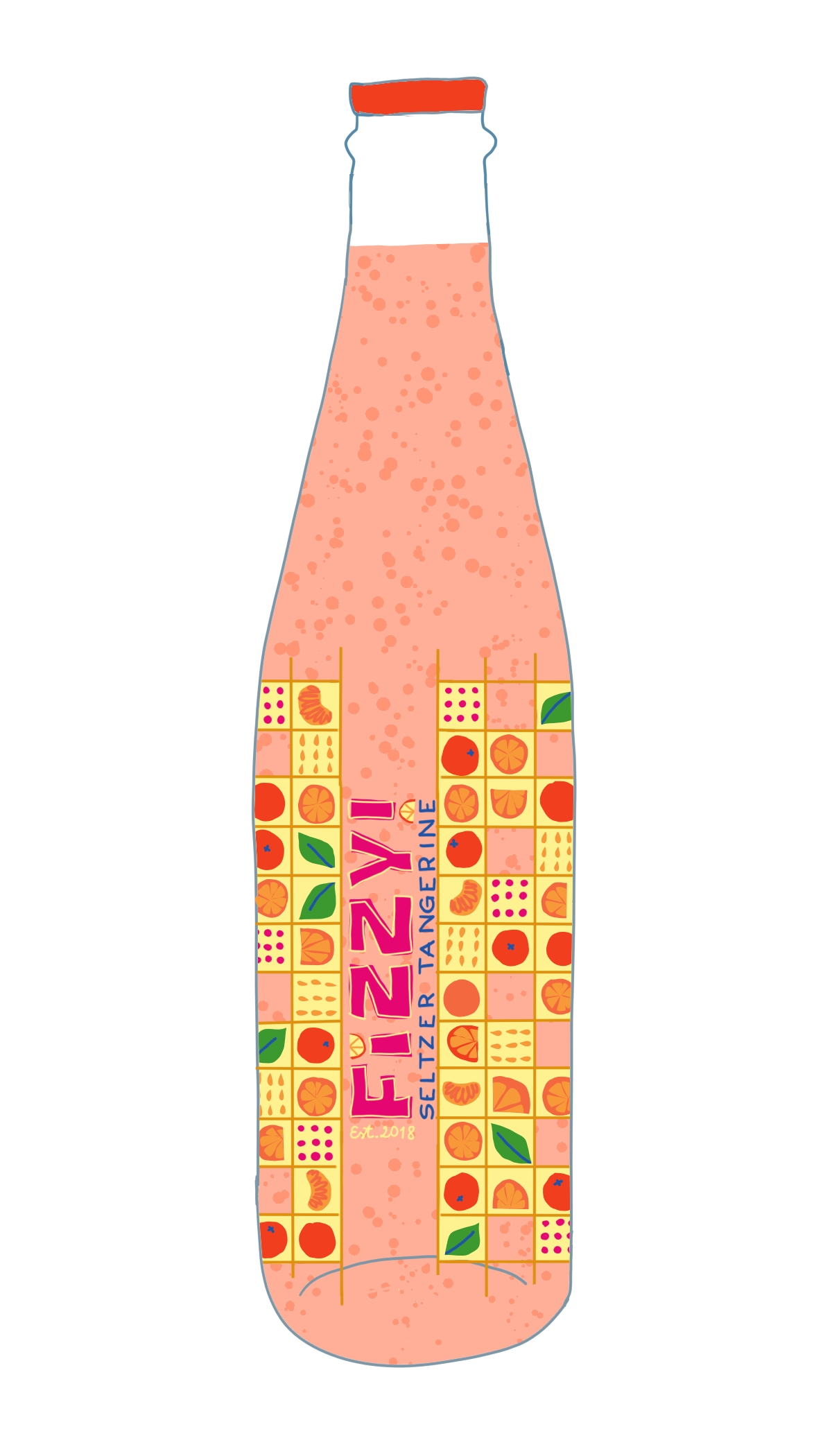 Title: Beverage label illustration - Fizzy! Seltzer Tangerine || Name: Zuza Dudek || Website/Social media