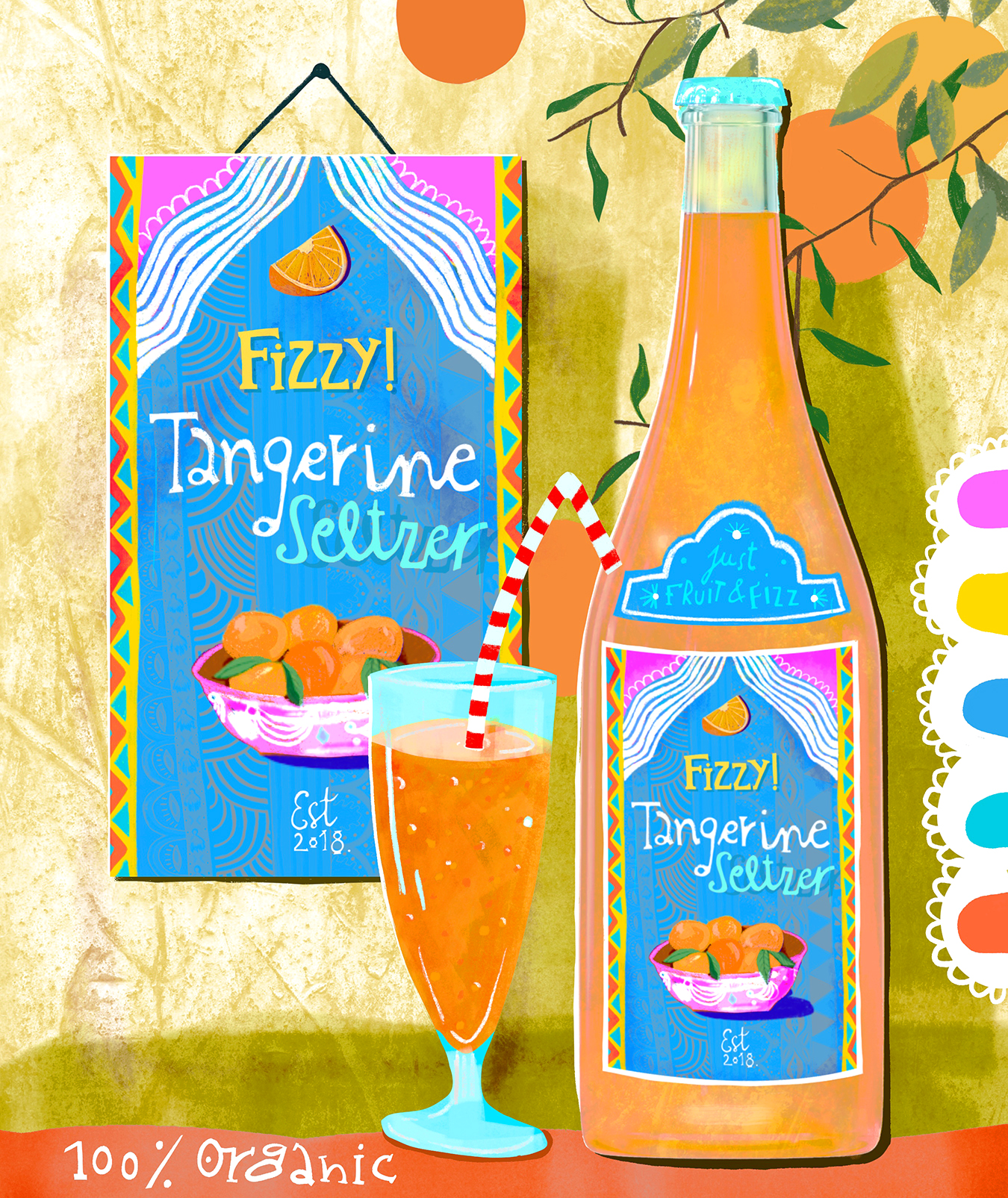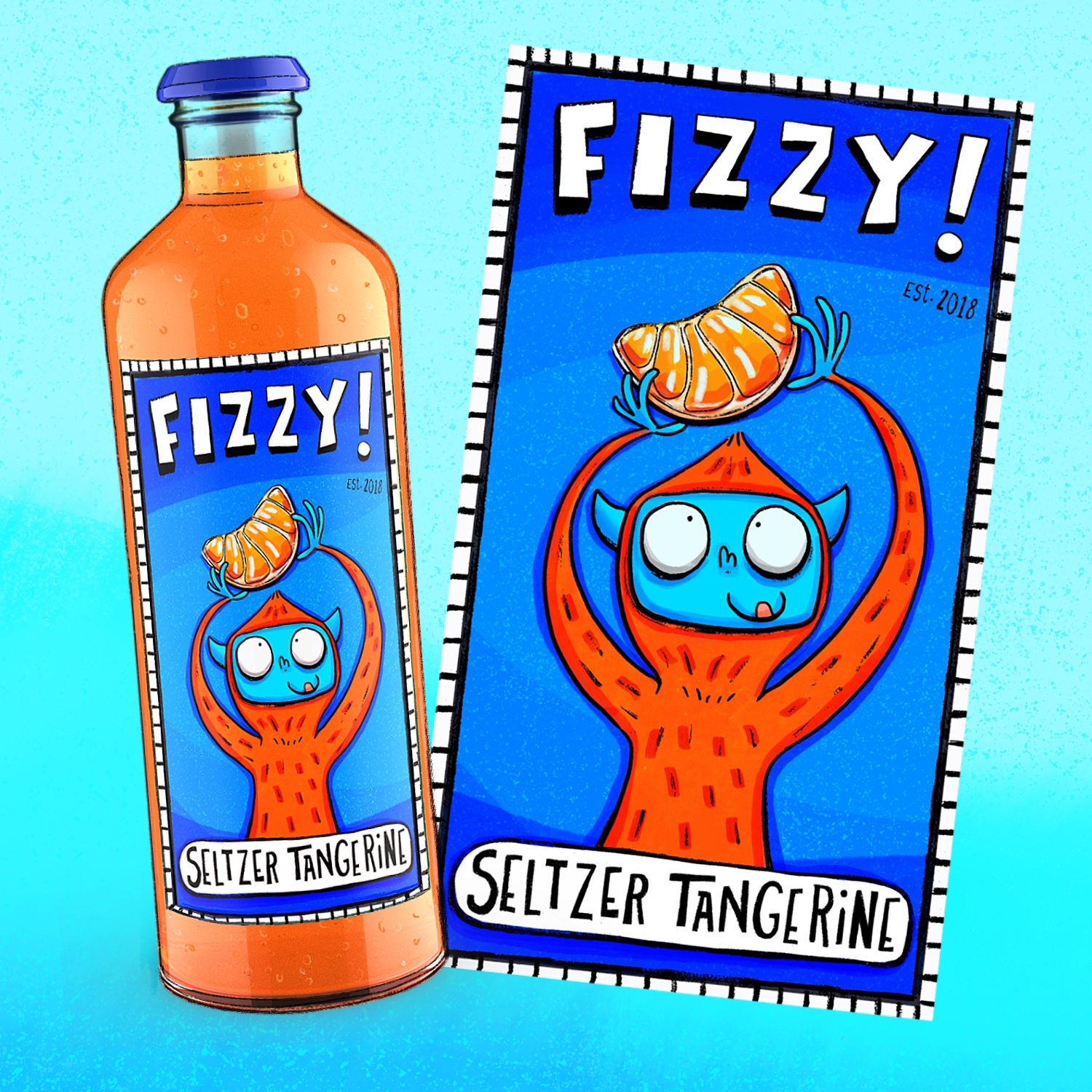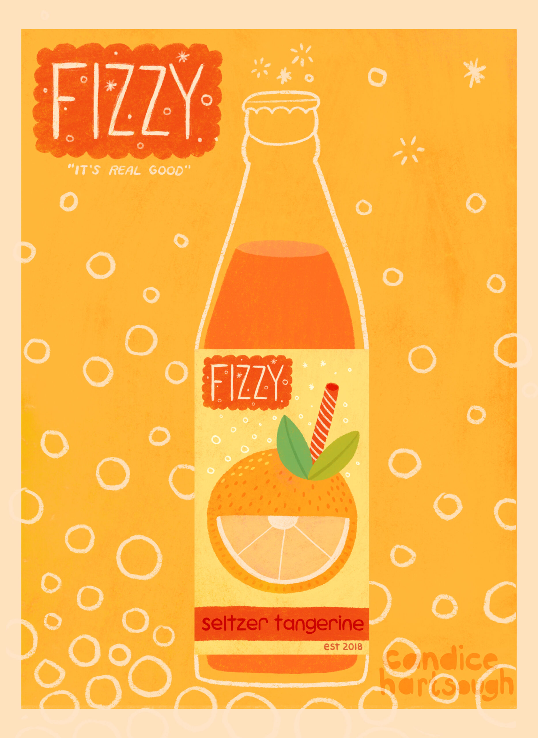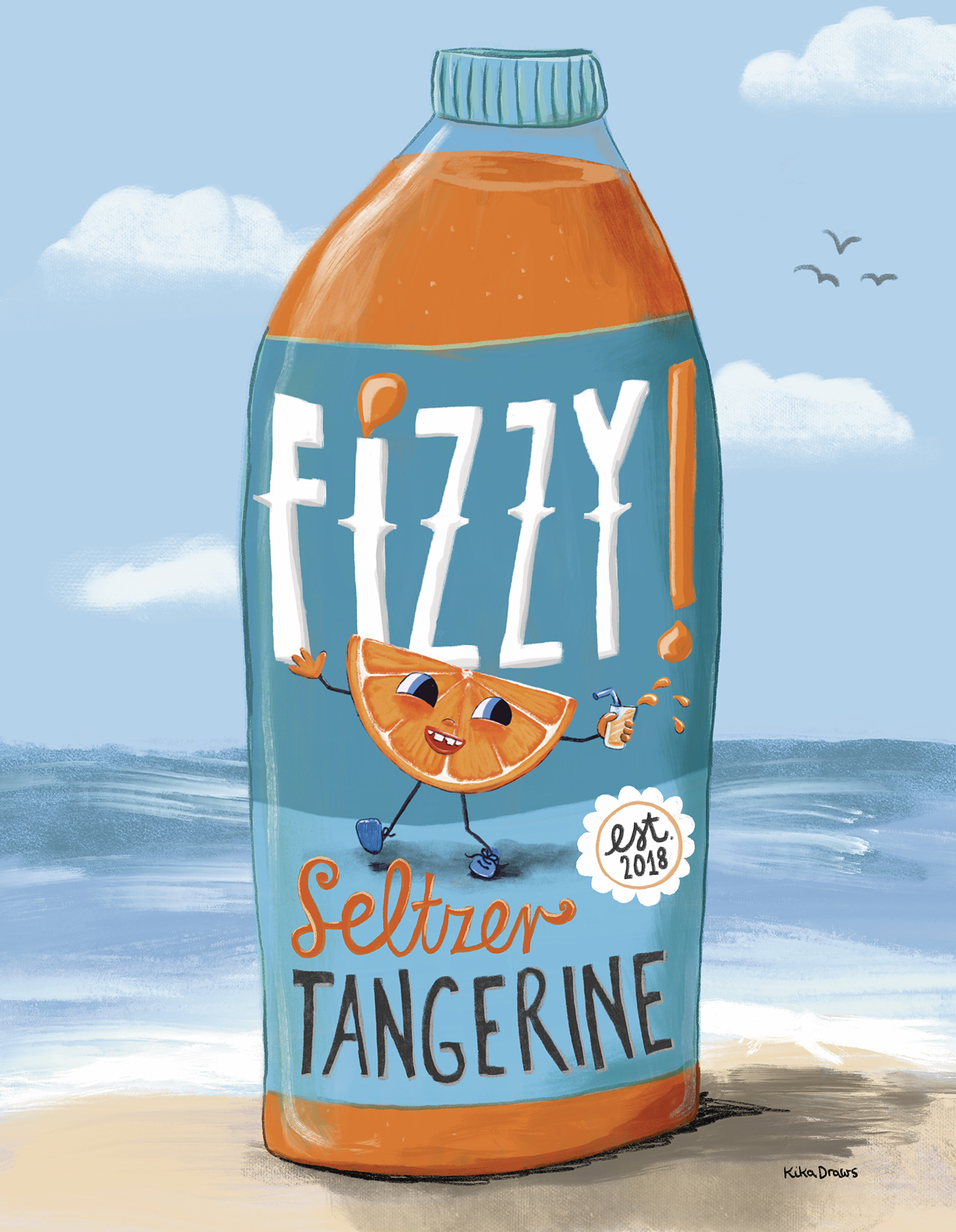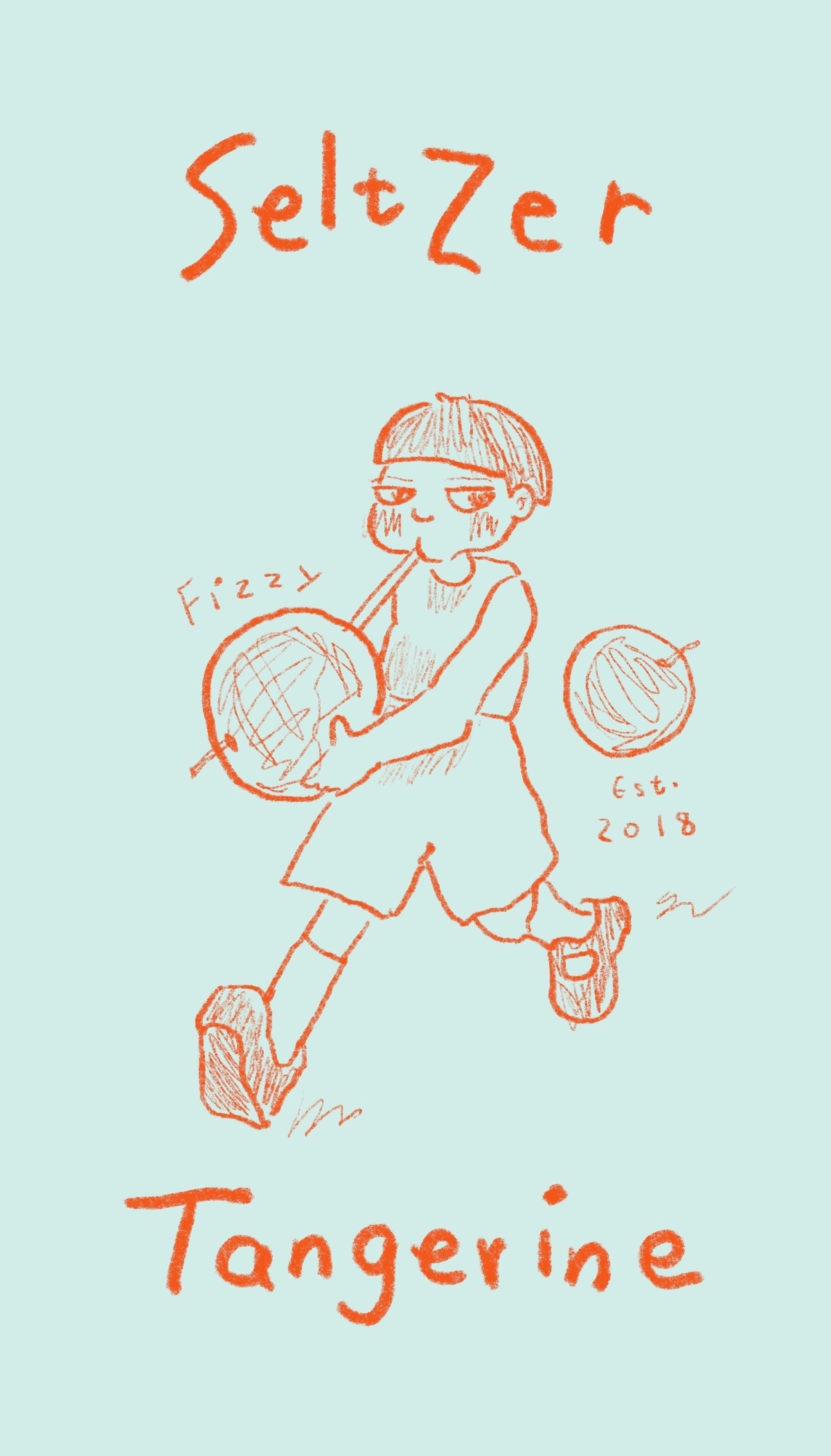 Title: Beverage label illustration - Fizzy! Seltzer Tangerine || Name: Zuza Dudek || Website/Social media
