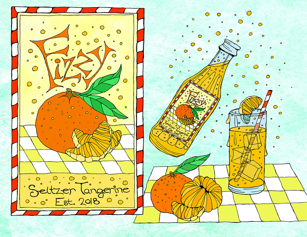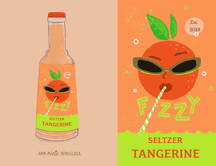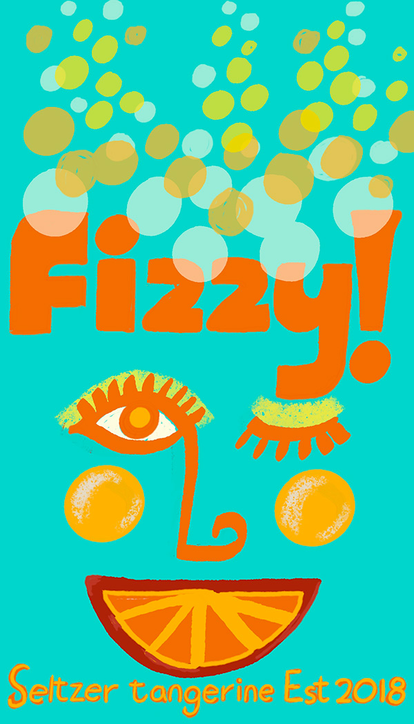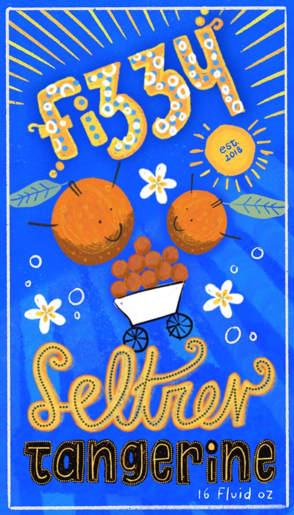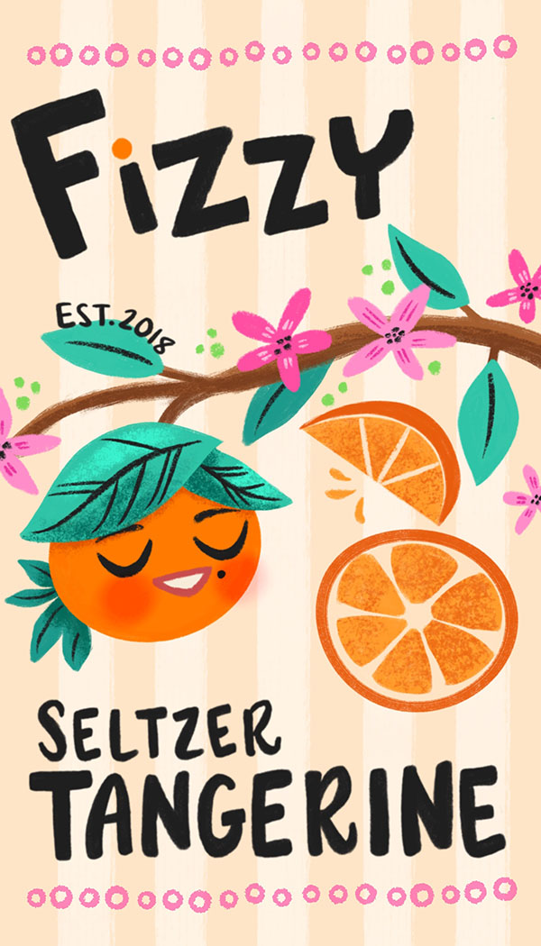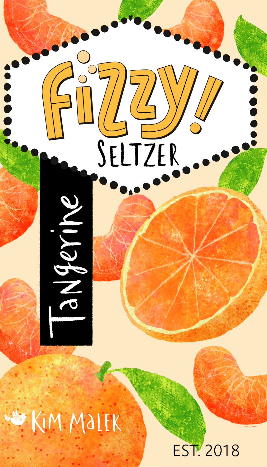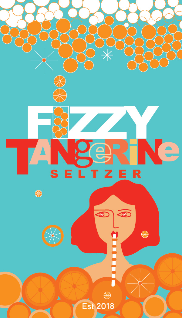Title: Fizzy Tangerine Seltzer Label || Name: Karin Lauria || Website/Social media