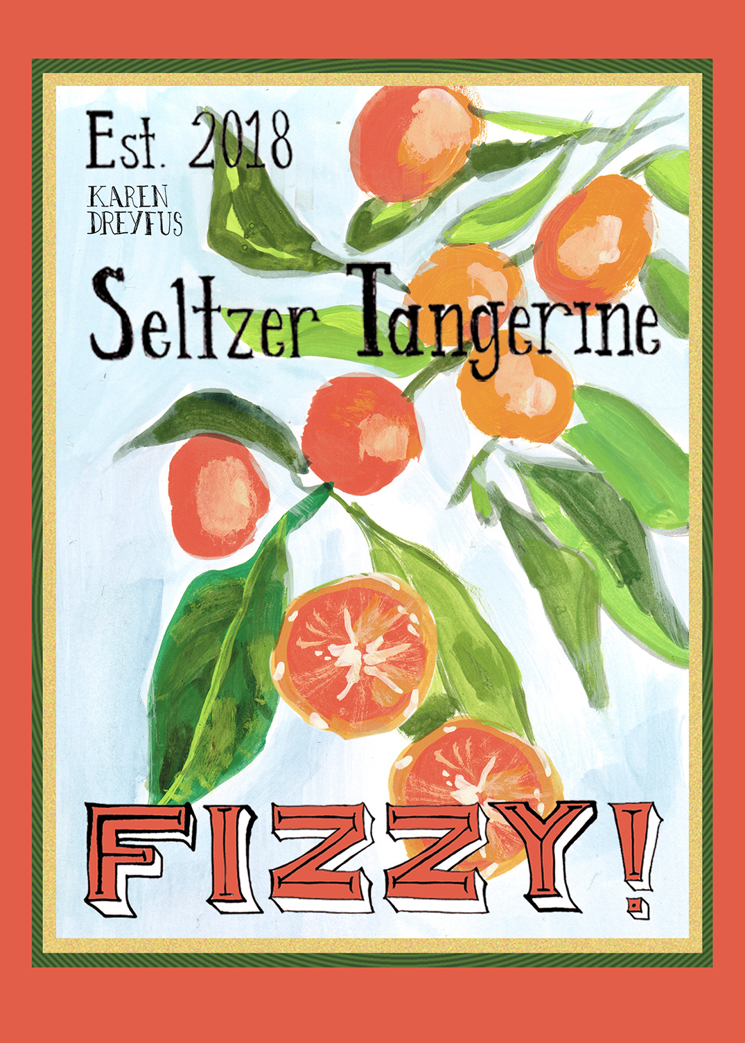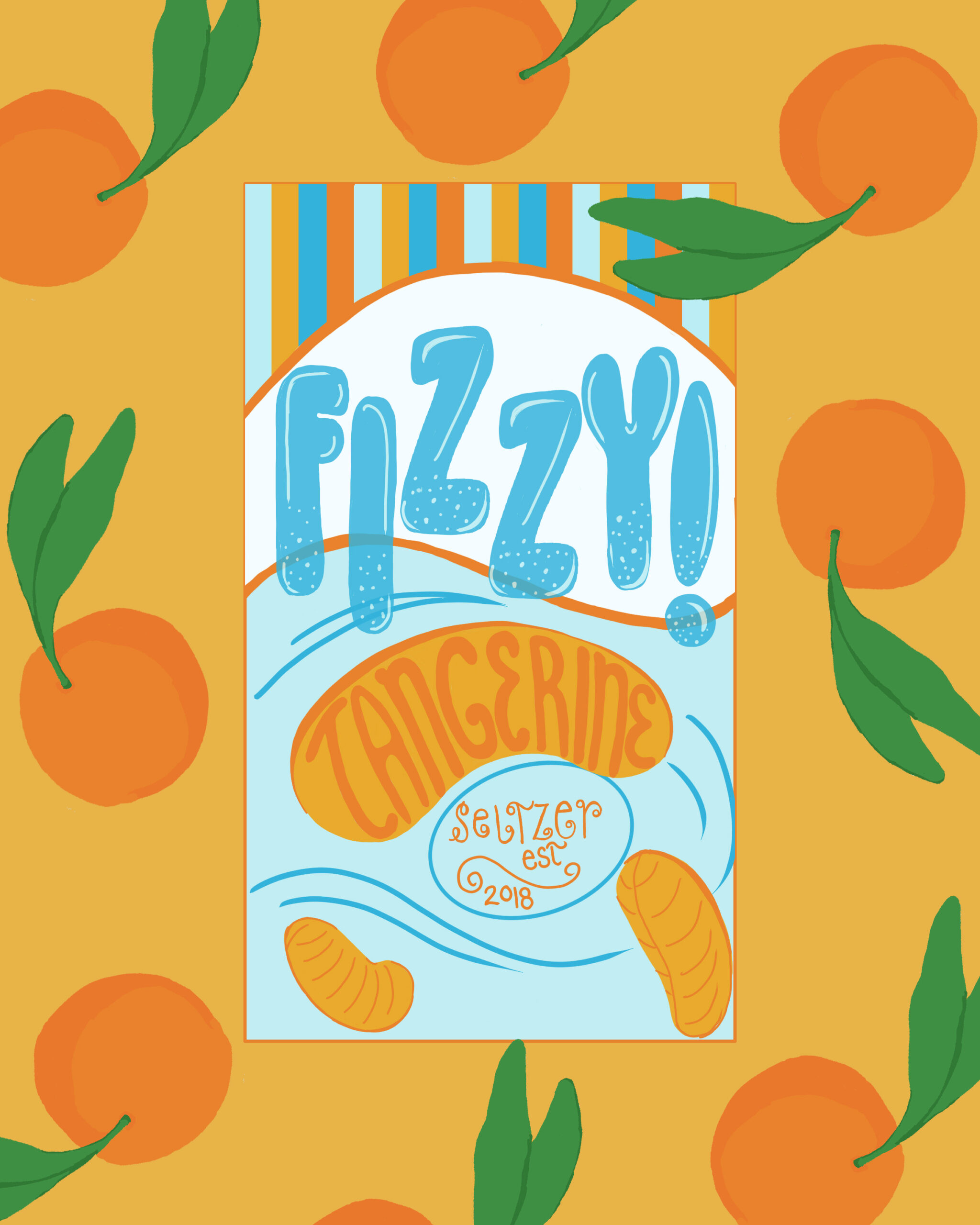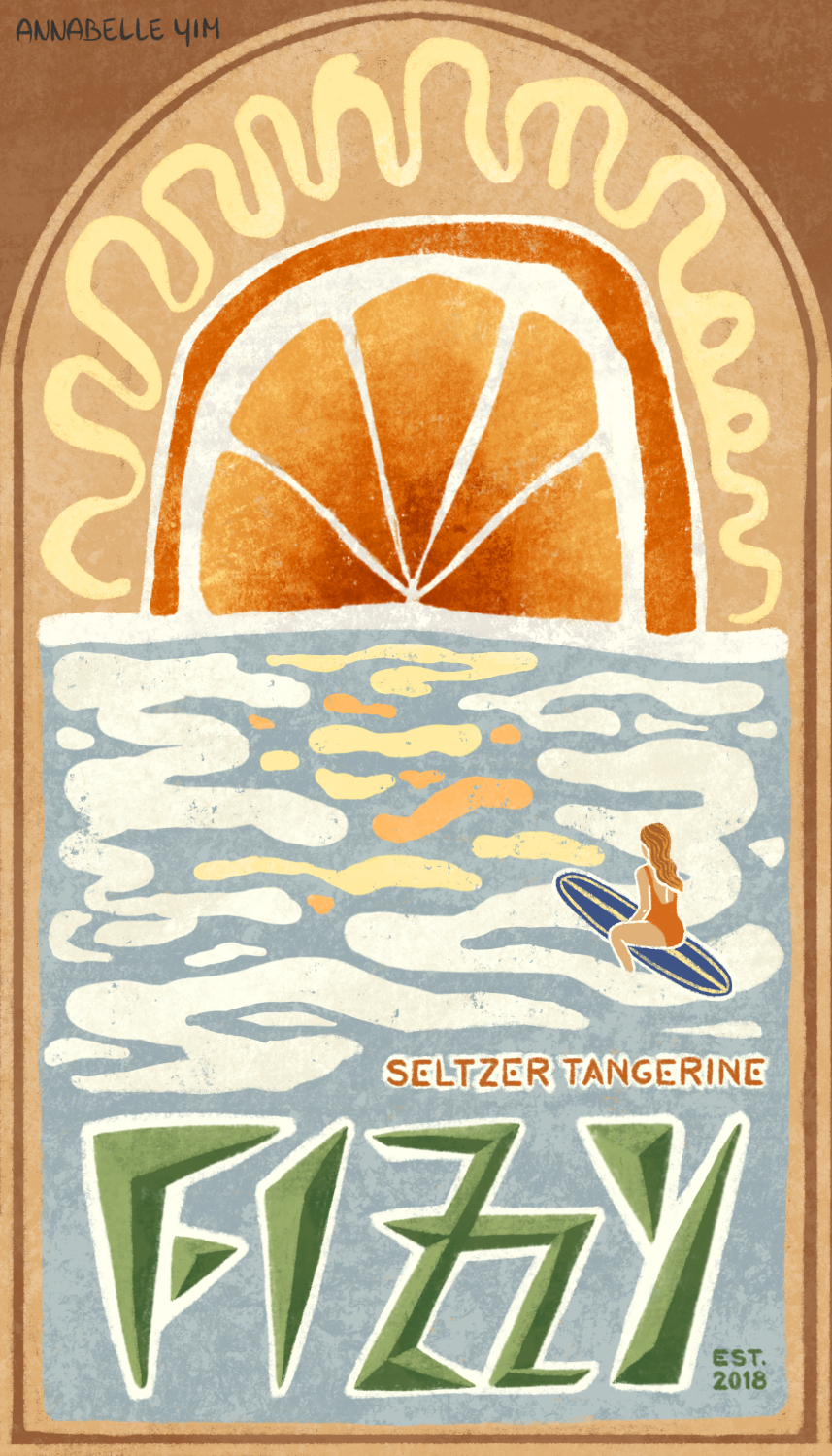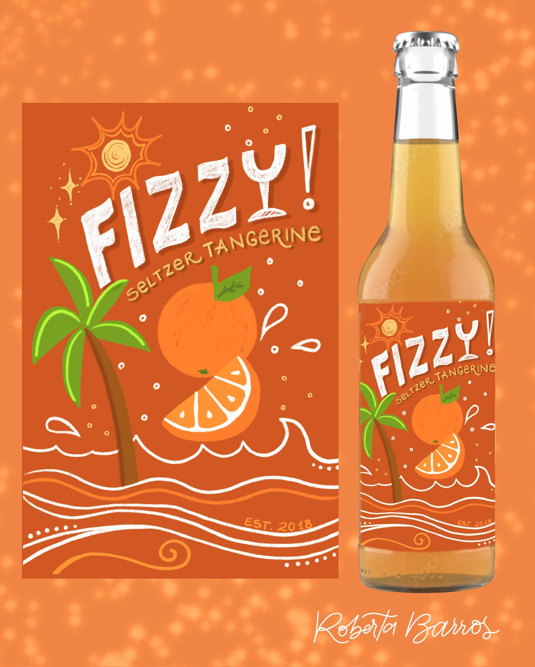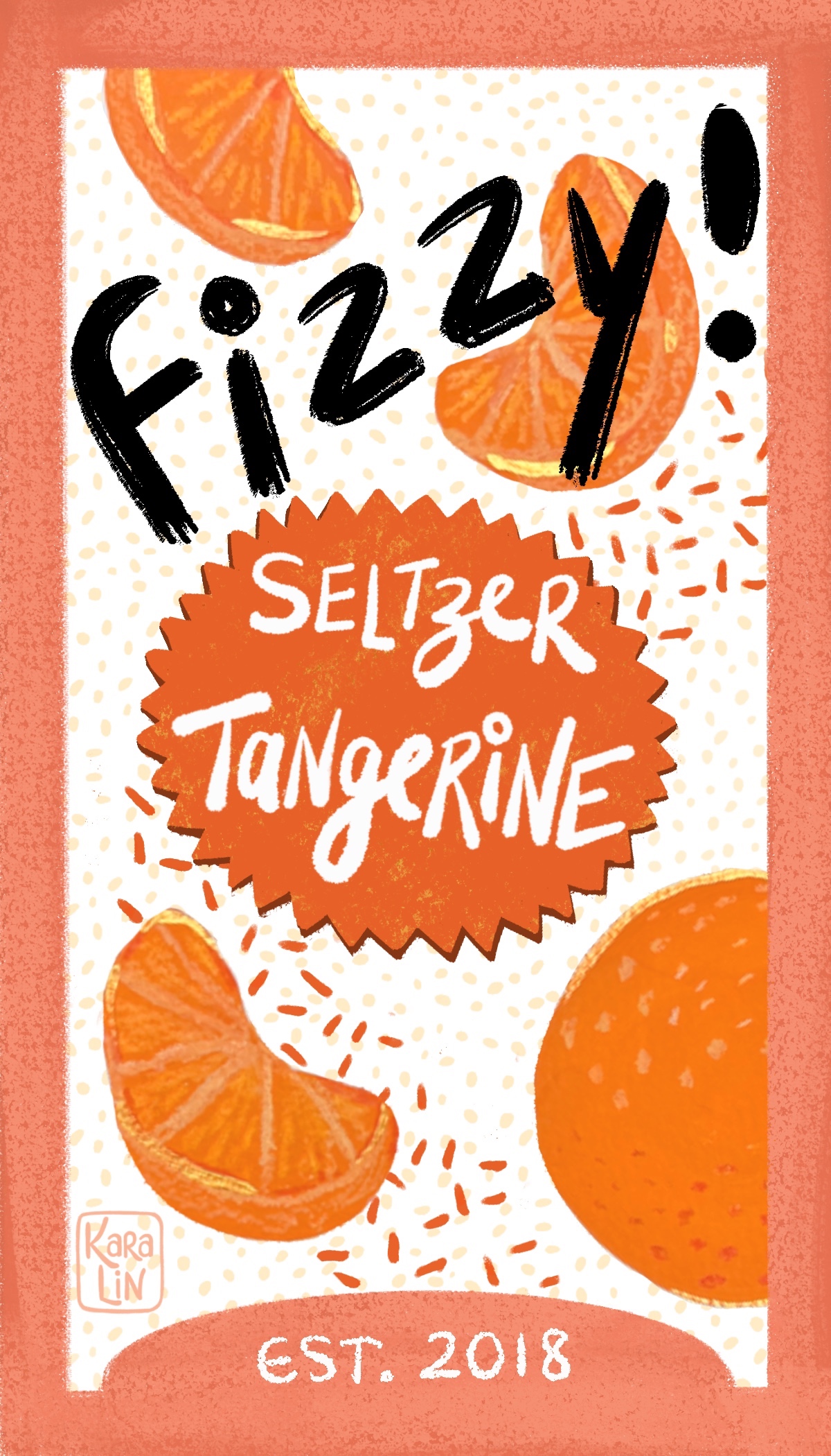 Title: Fizzy Tangerine Seltzer Label || Name: Karin Lauria || Website/Social media