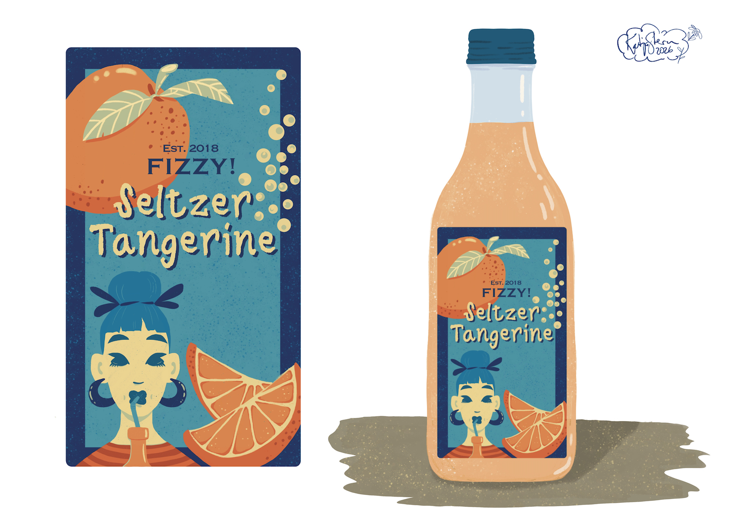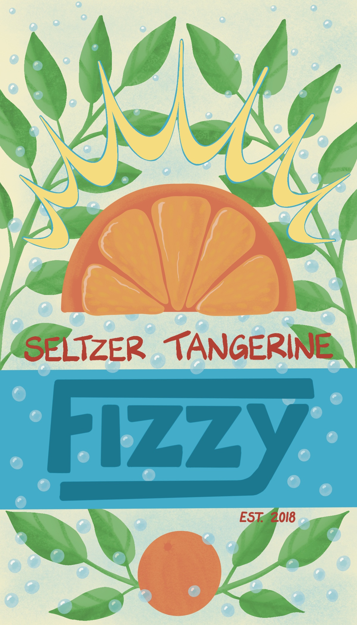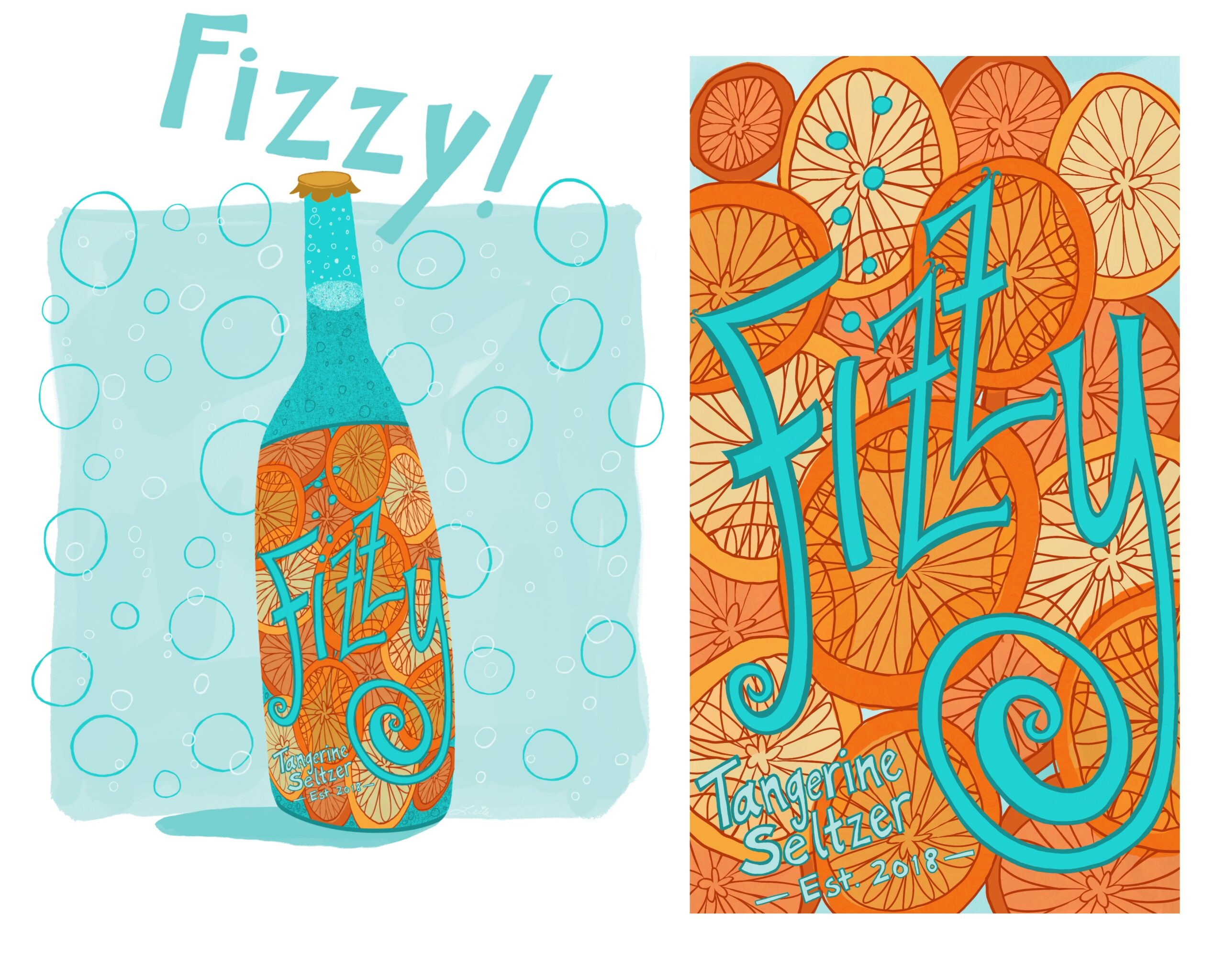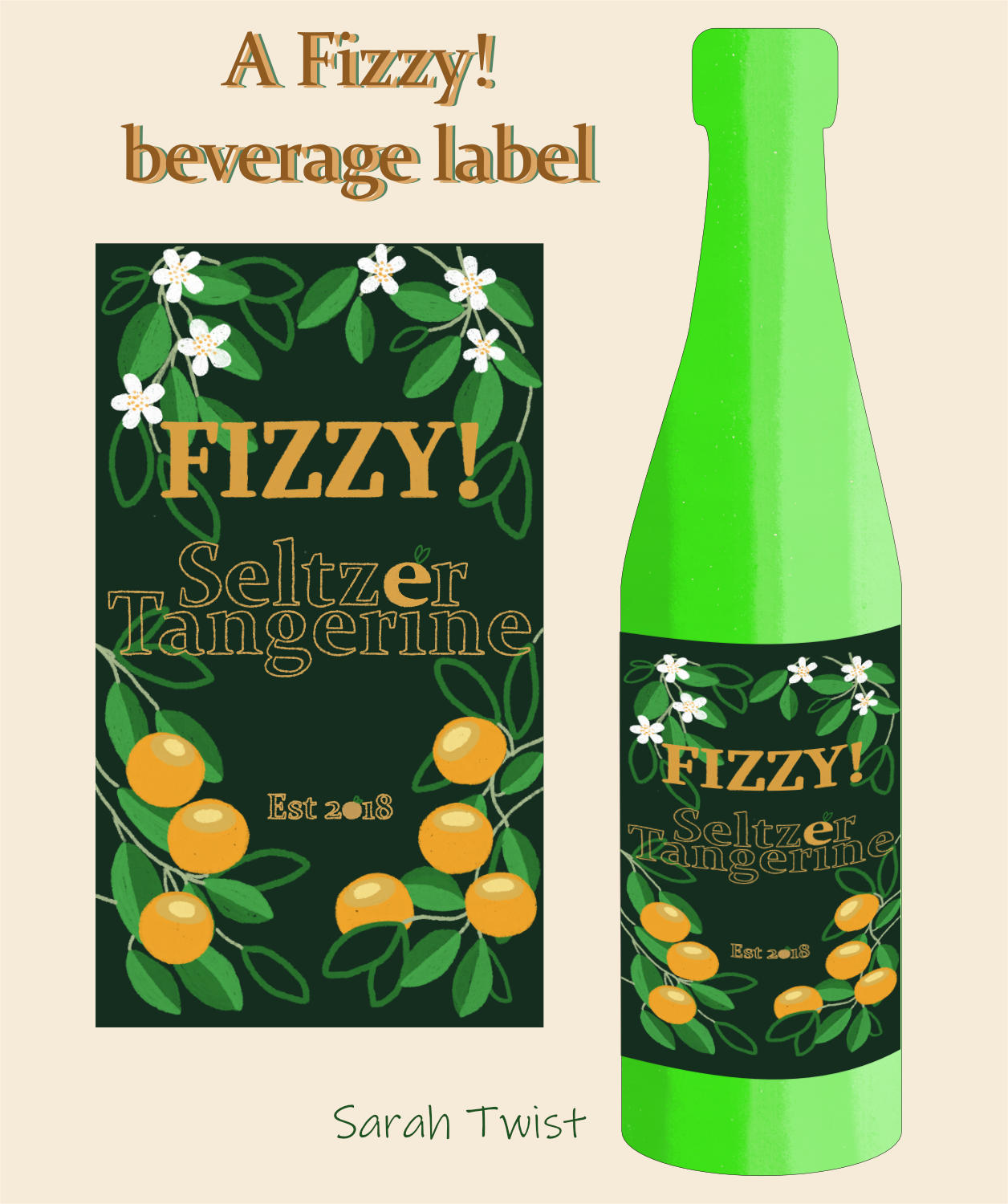 Title: Fizzy Tangerine Seltzer Label || Name: Karin Lauria || Website/Social media
