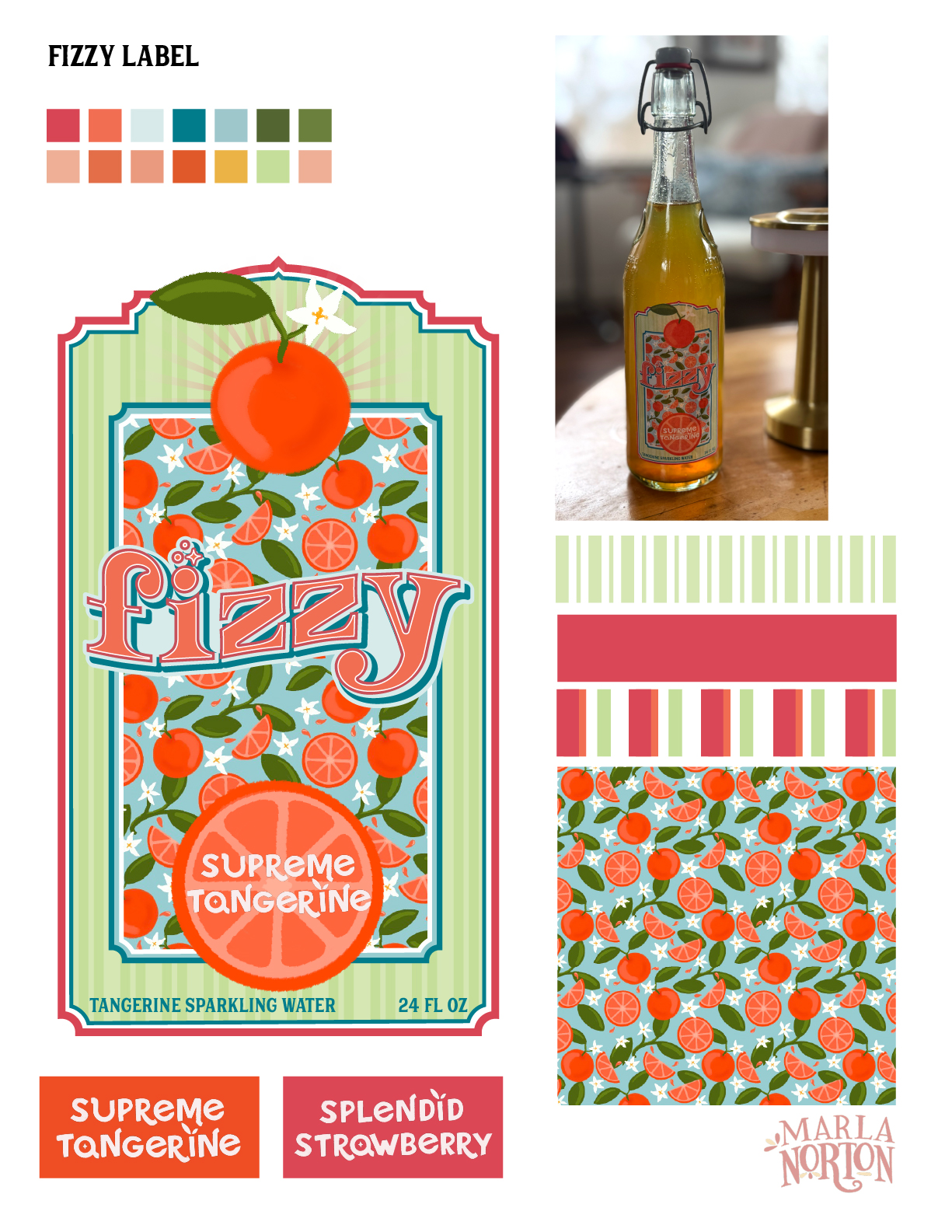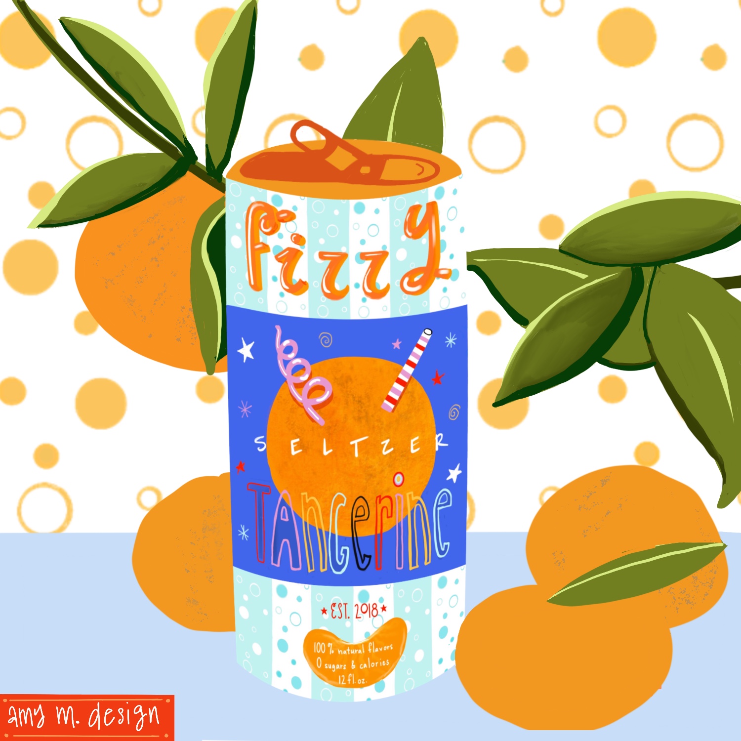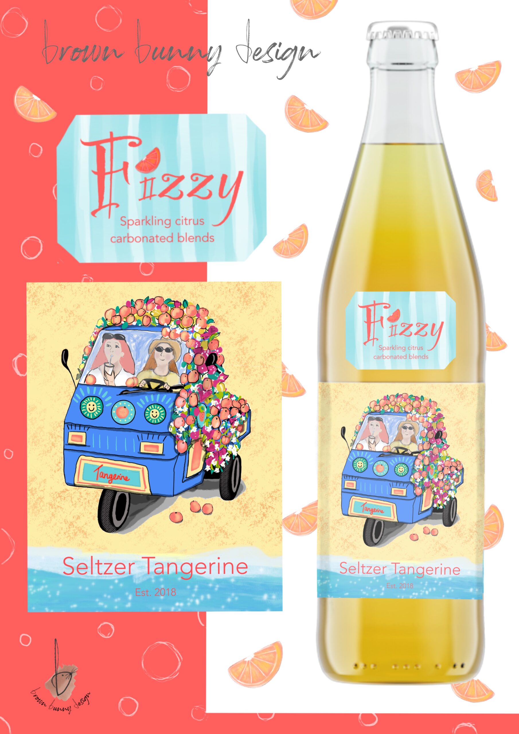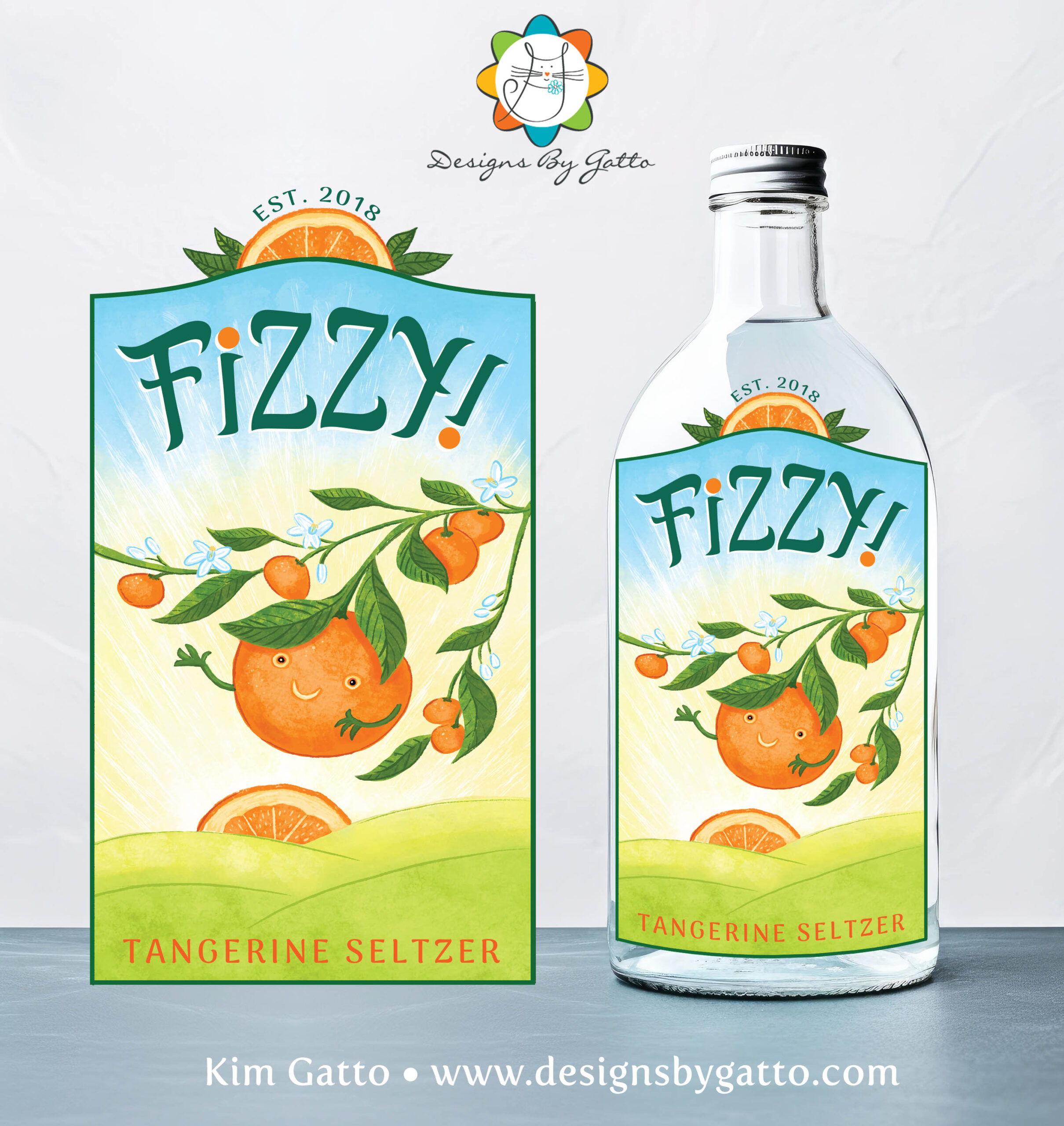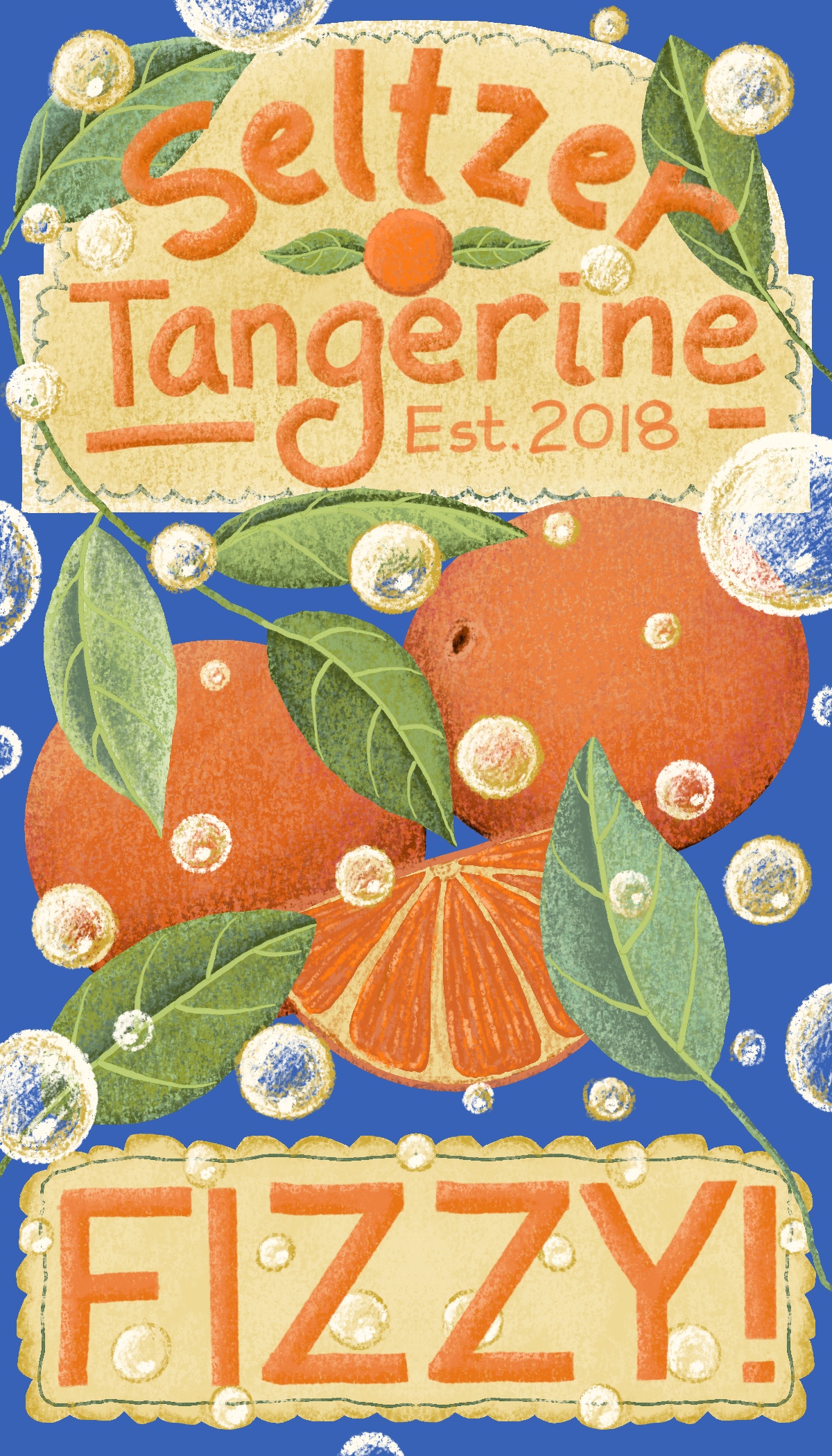 Title: Fizzy Tangerine Seltzer Label || Name: Karin Lauria || Website/Social media