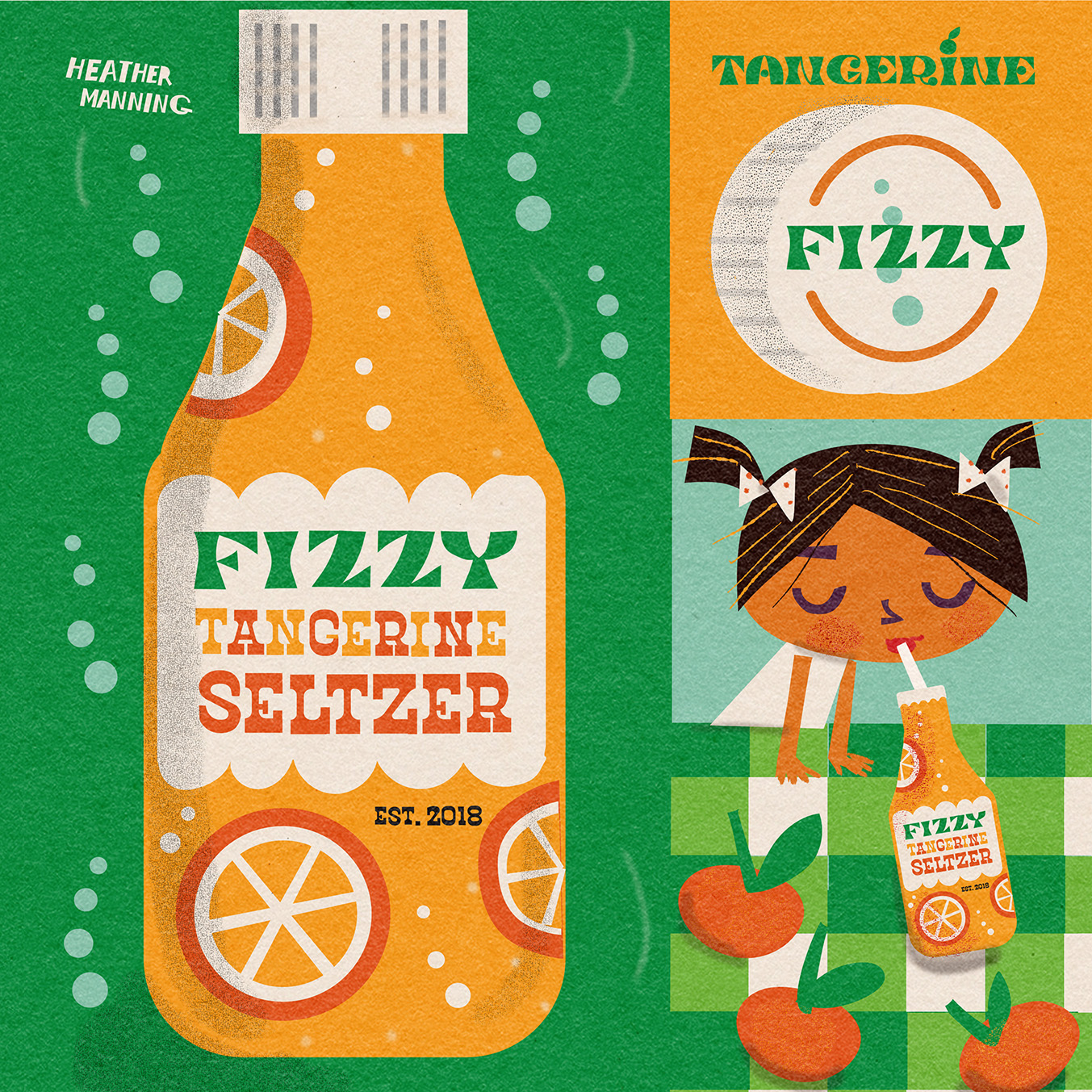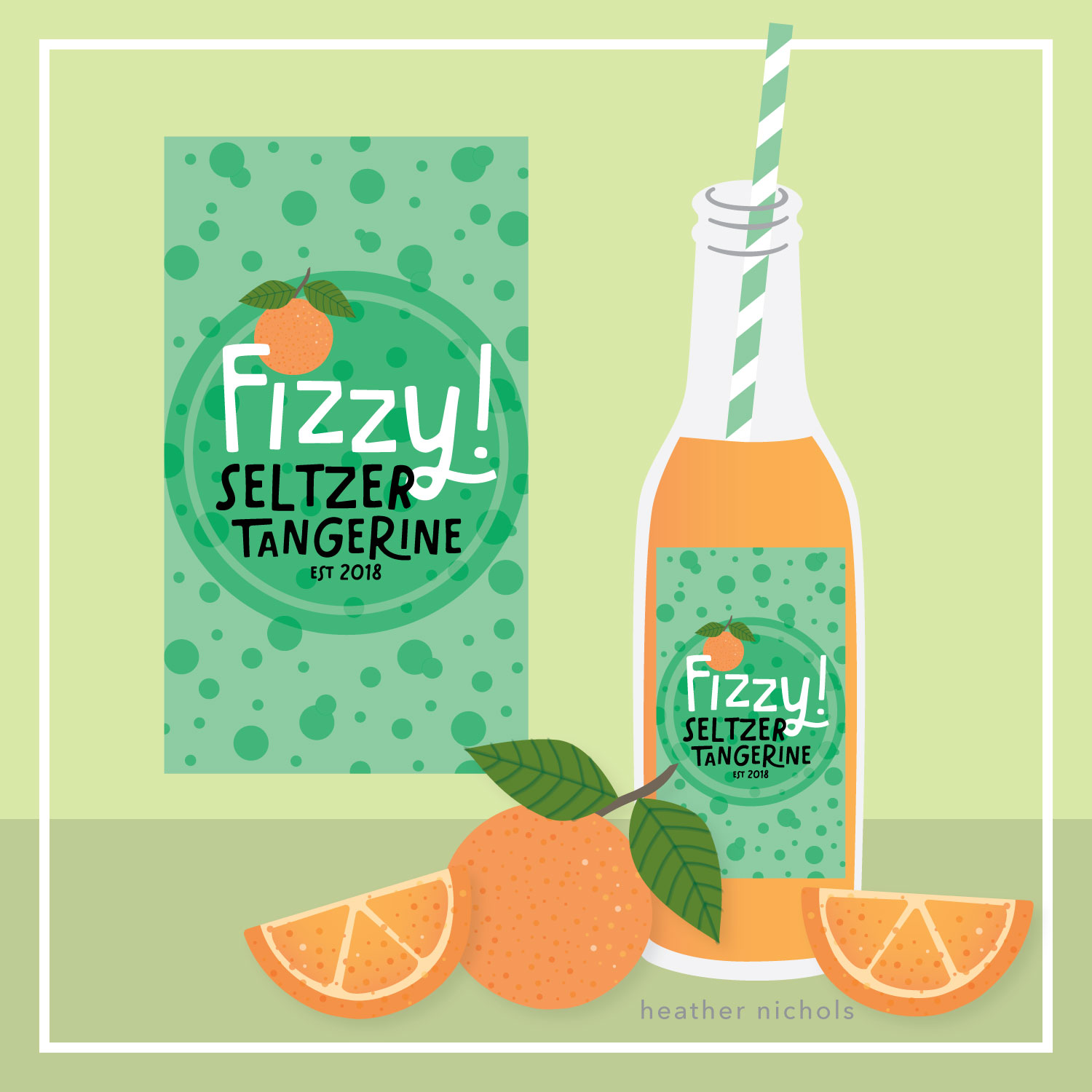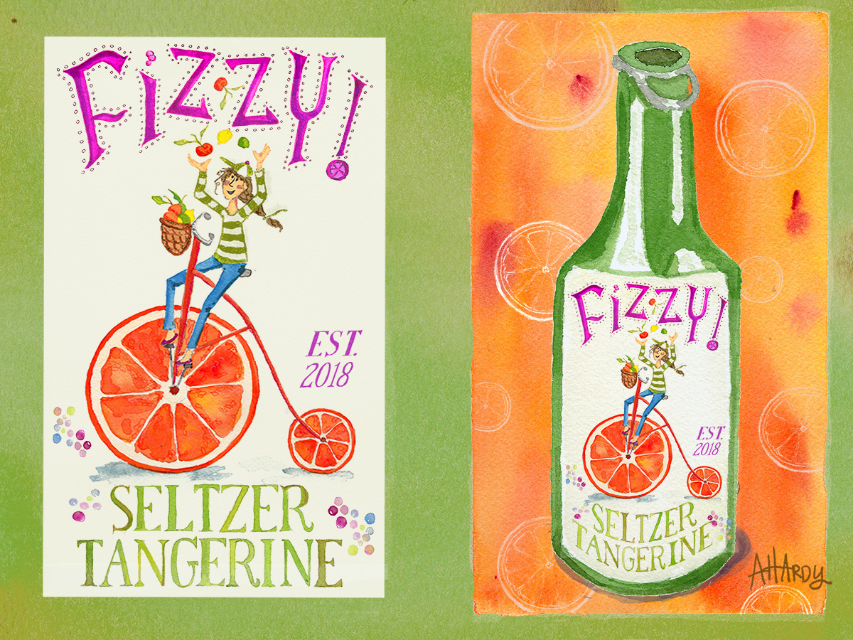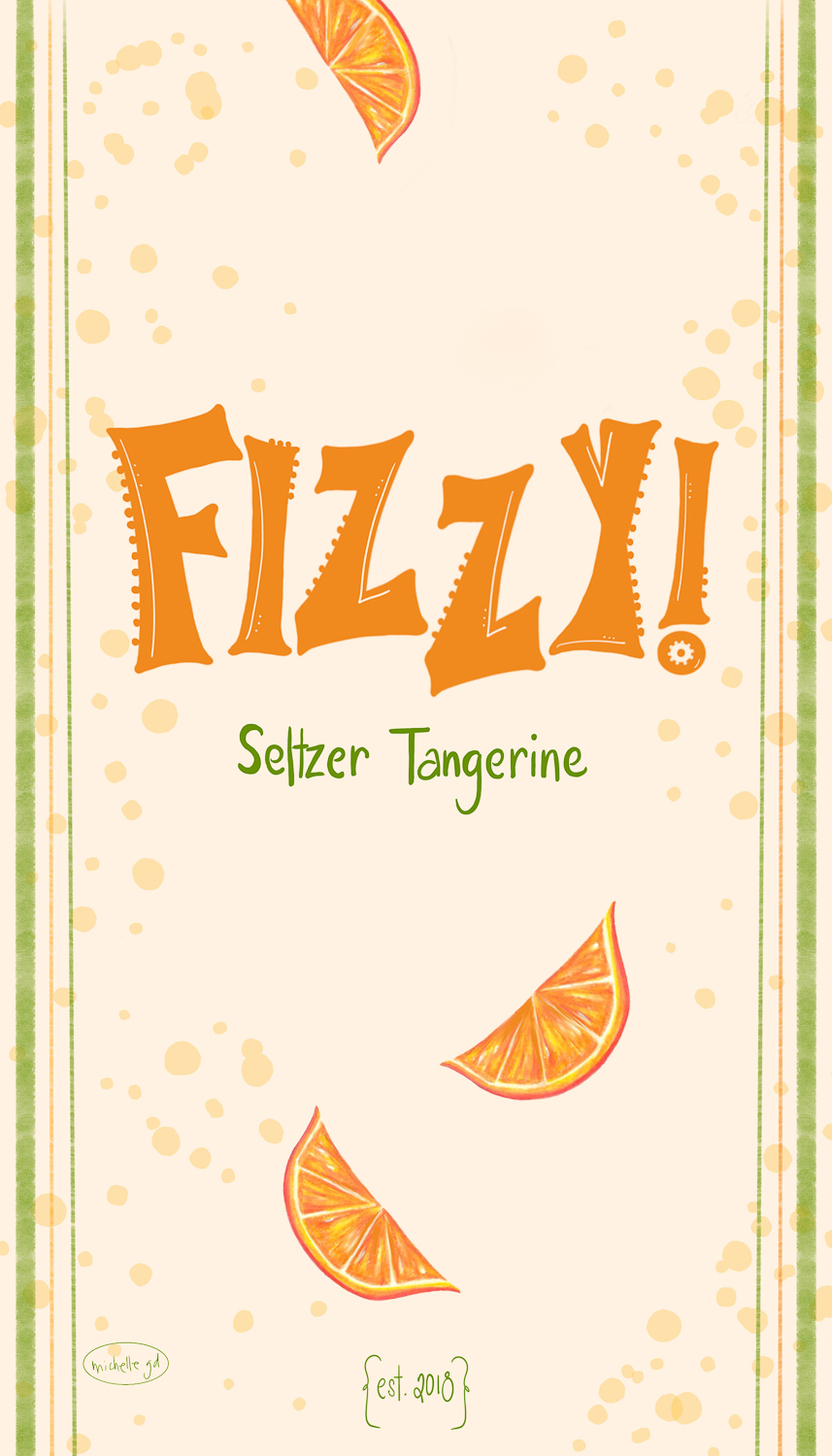 Title: Fizzy Tangerine Seltzer label || Name: Heather Nichols || Website/Social media