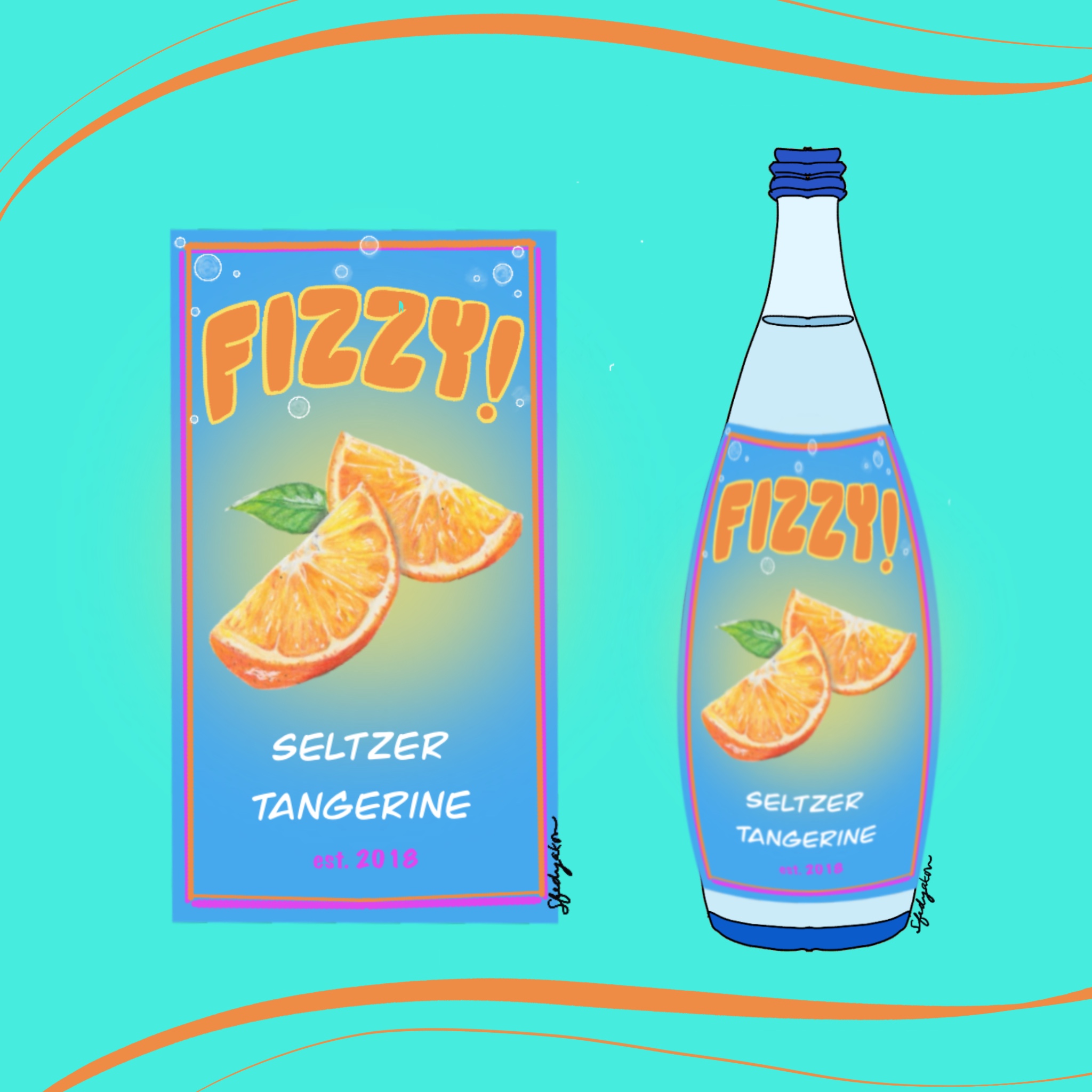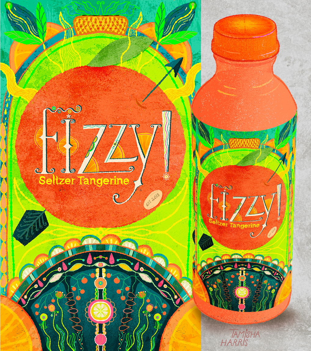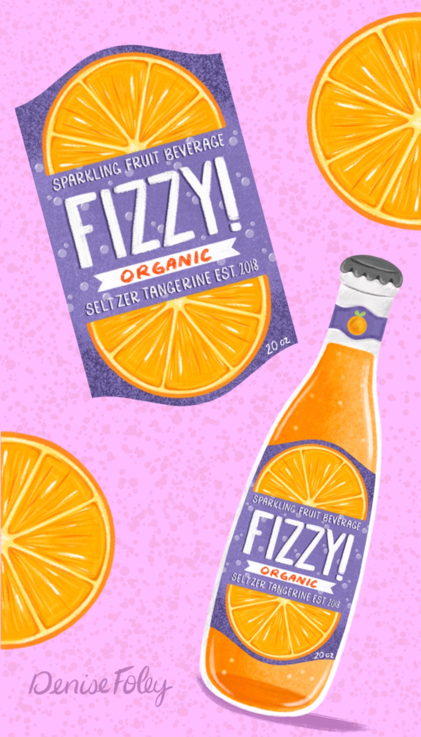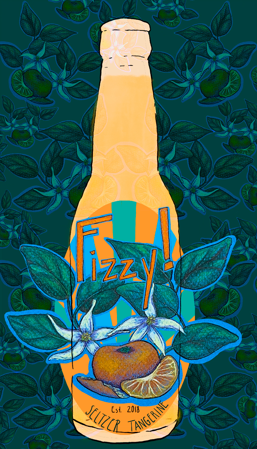 Title: Fizzy Seltzer Tangerine Bottle Label || Name: Joanna Mahoney || Website/Social media