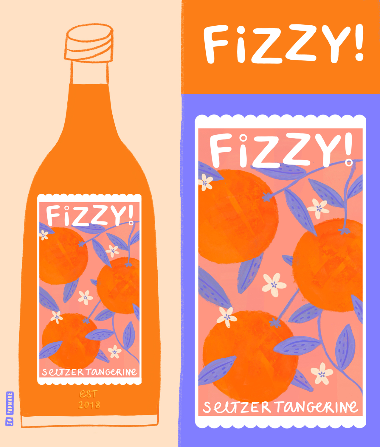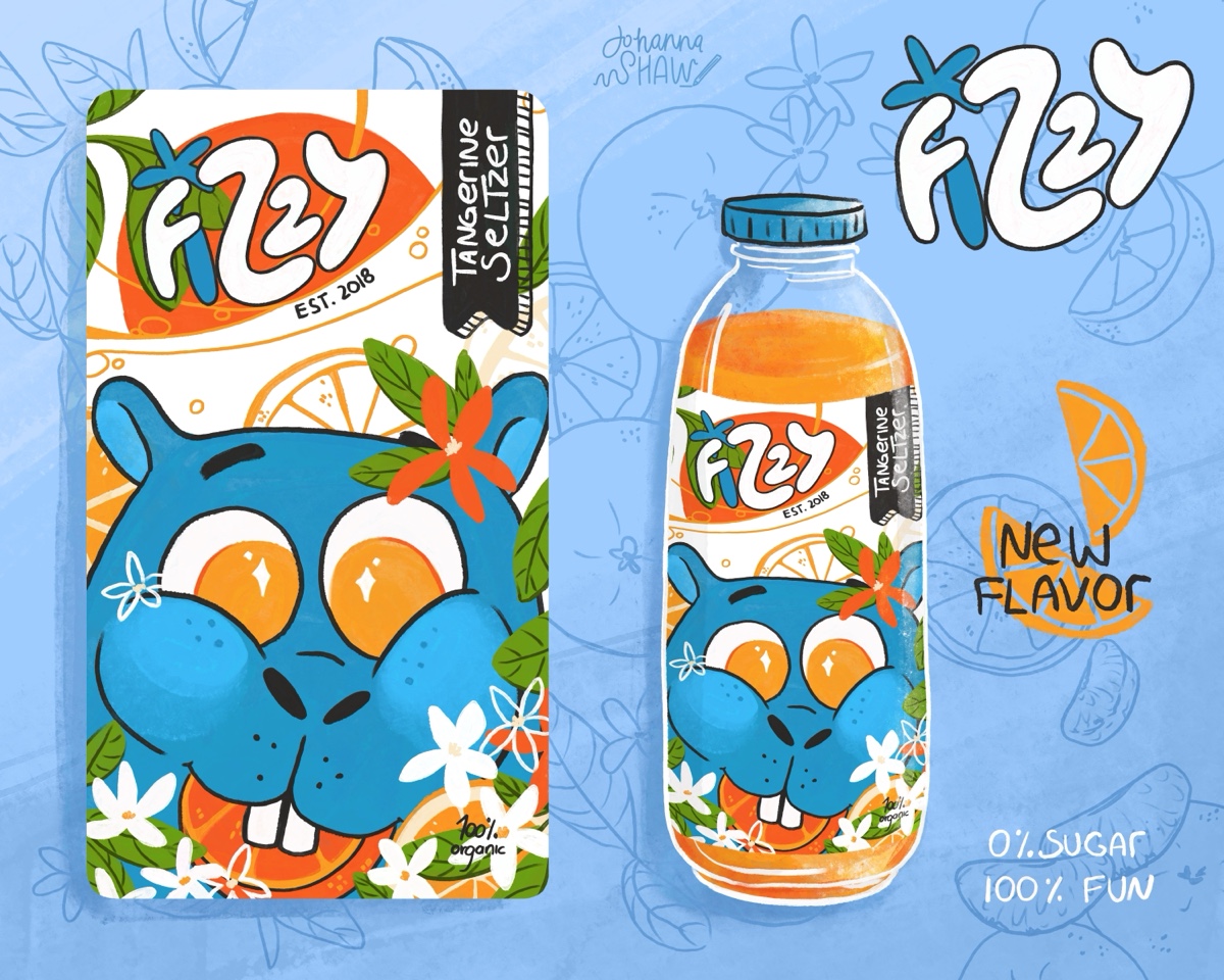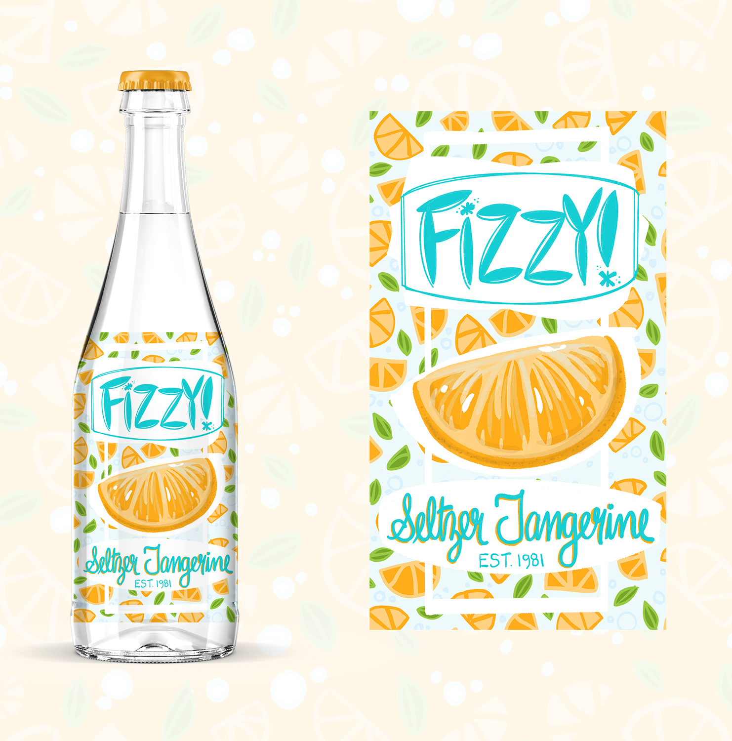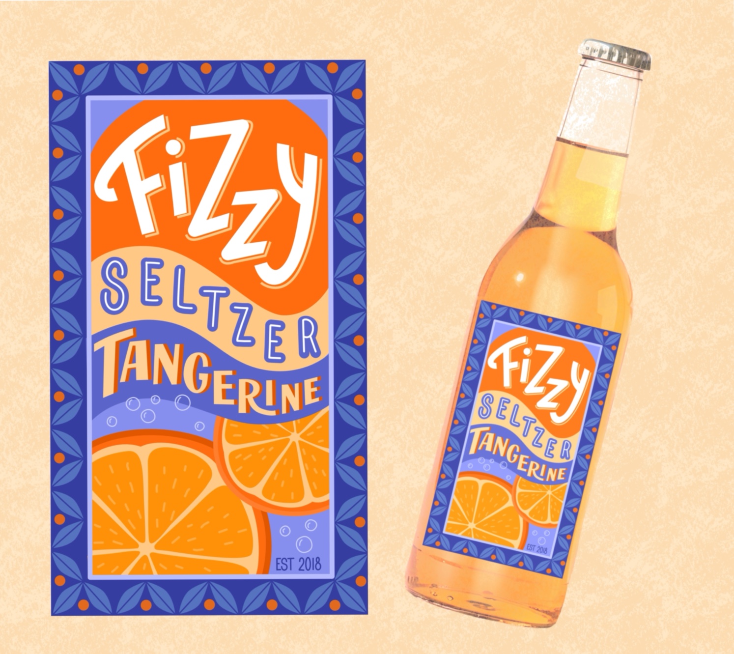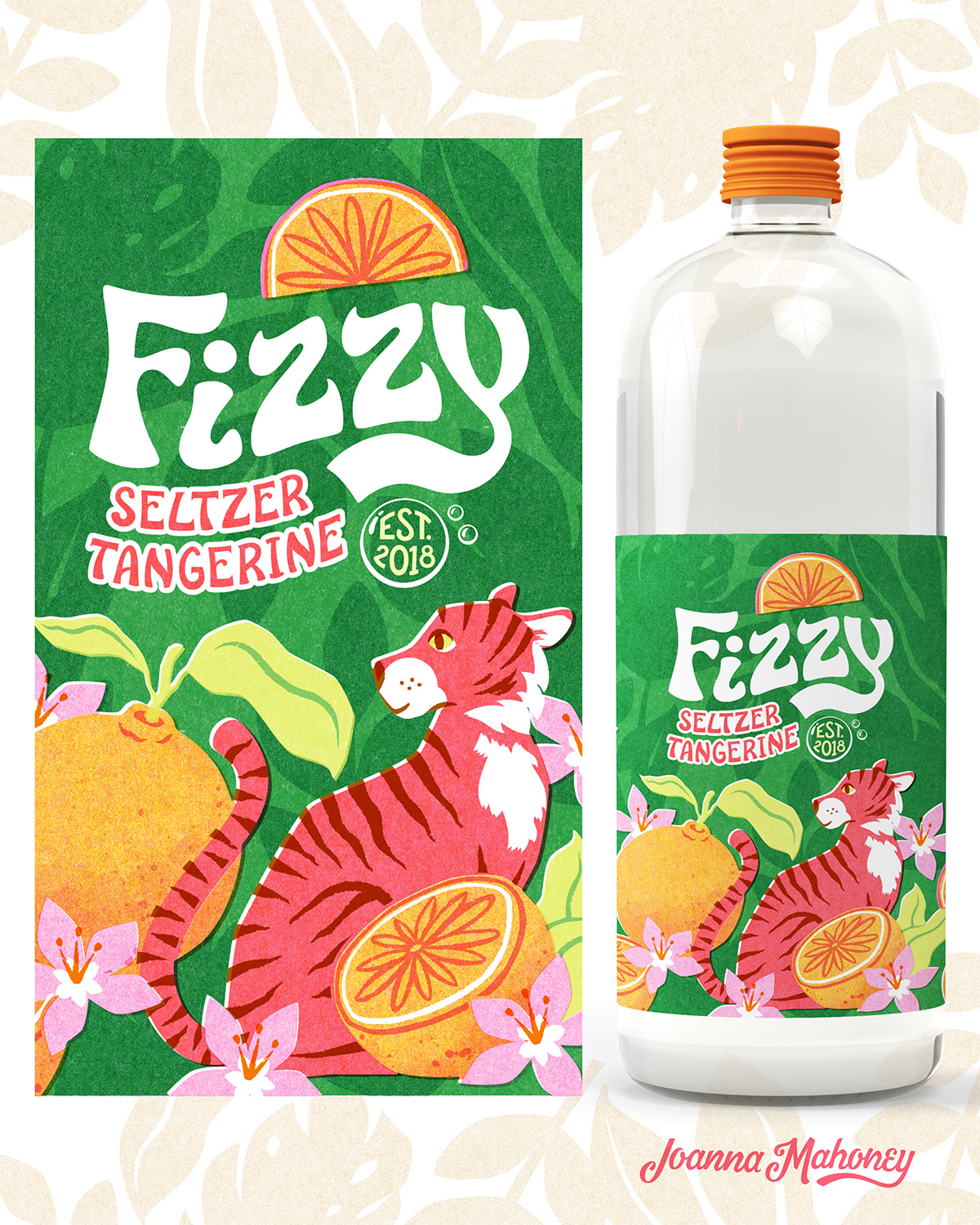 Title: Fizzy Seltzer Tangerine Bottle Label || Name: Joanna Mahoney || Website/Social media