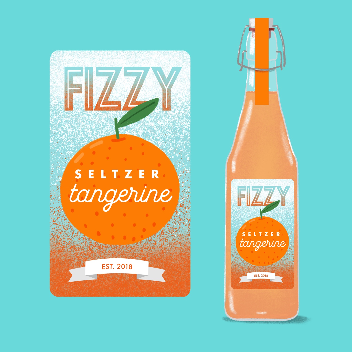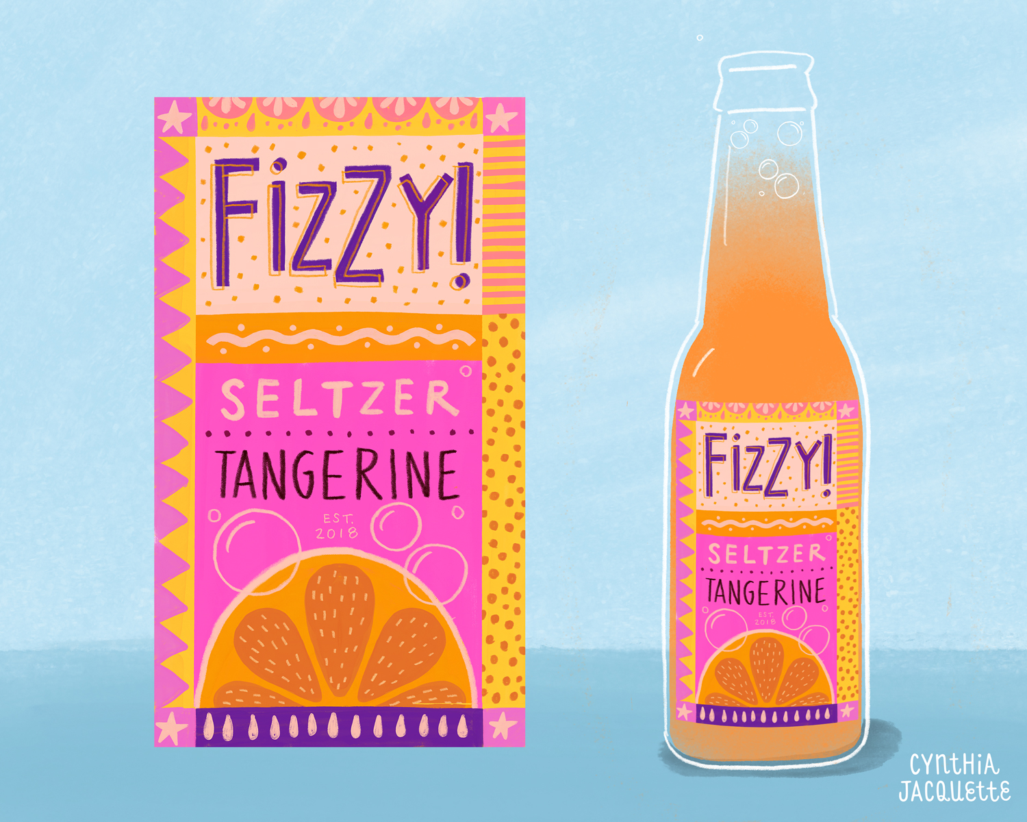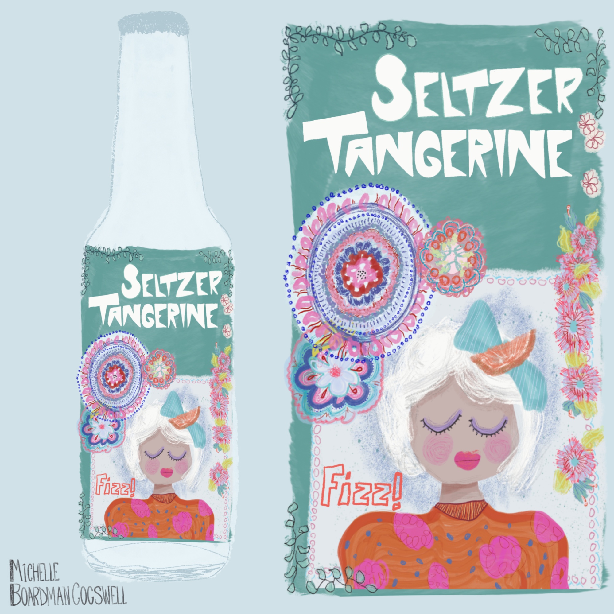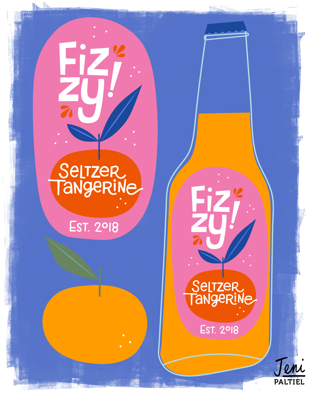 Title: Fizzy Seltzer Tangerine Bottle Label || Name: Joanna Mahoney || Website/Social media