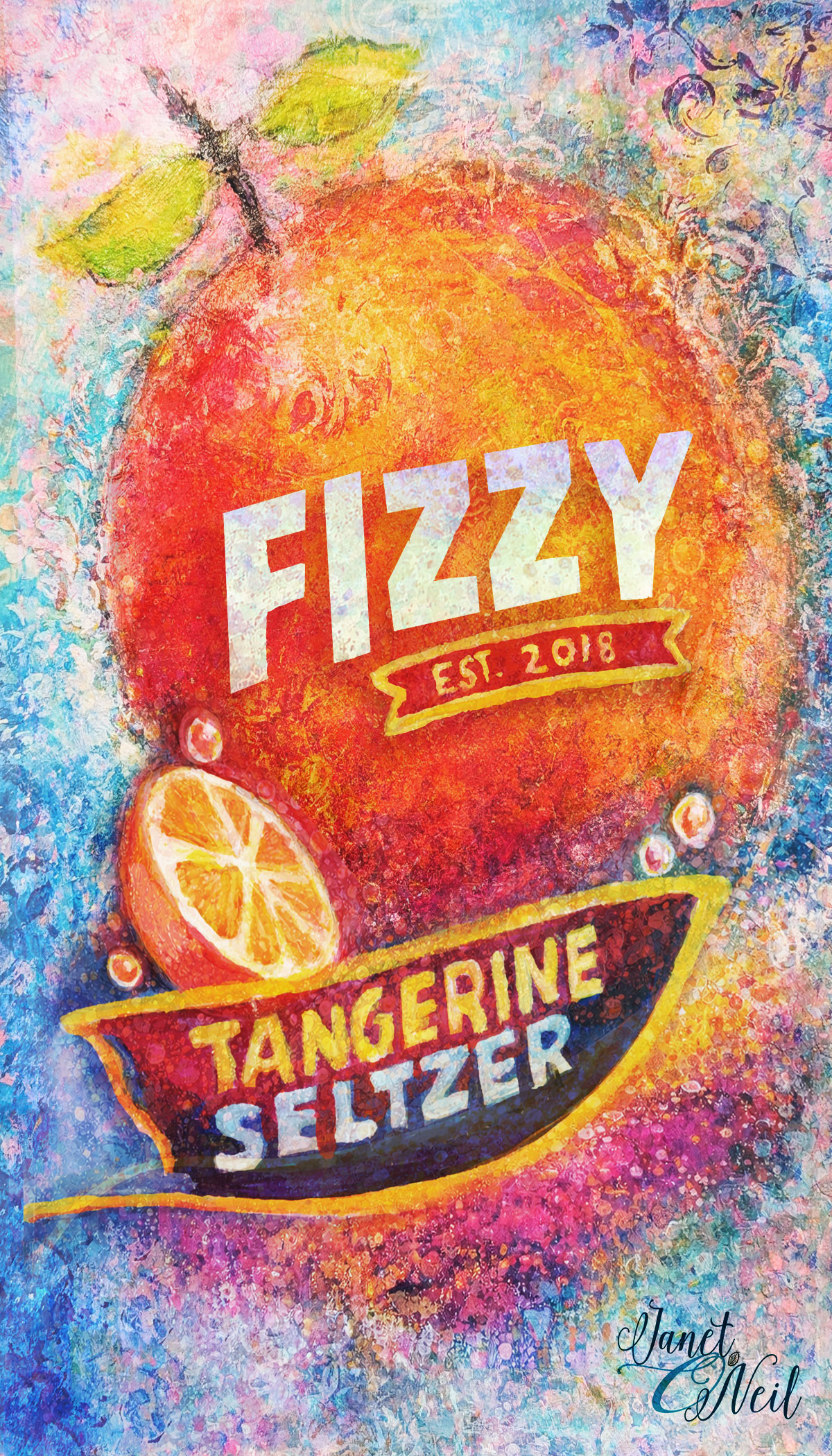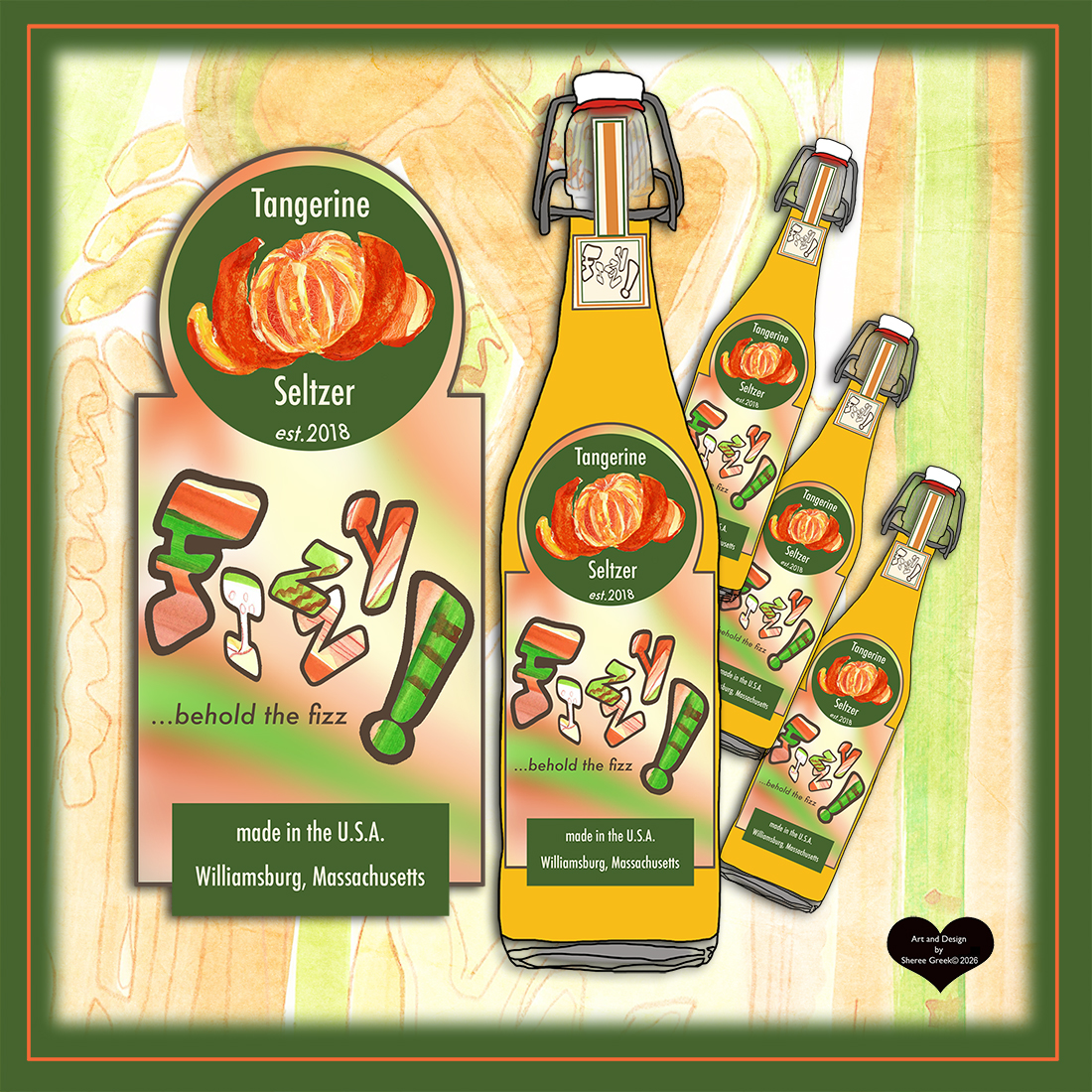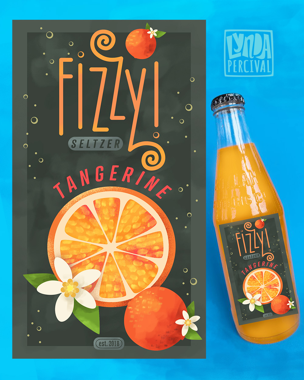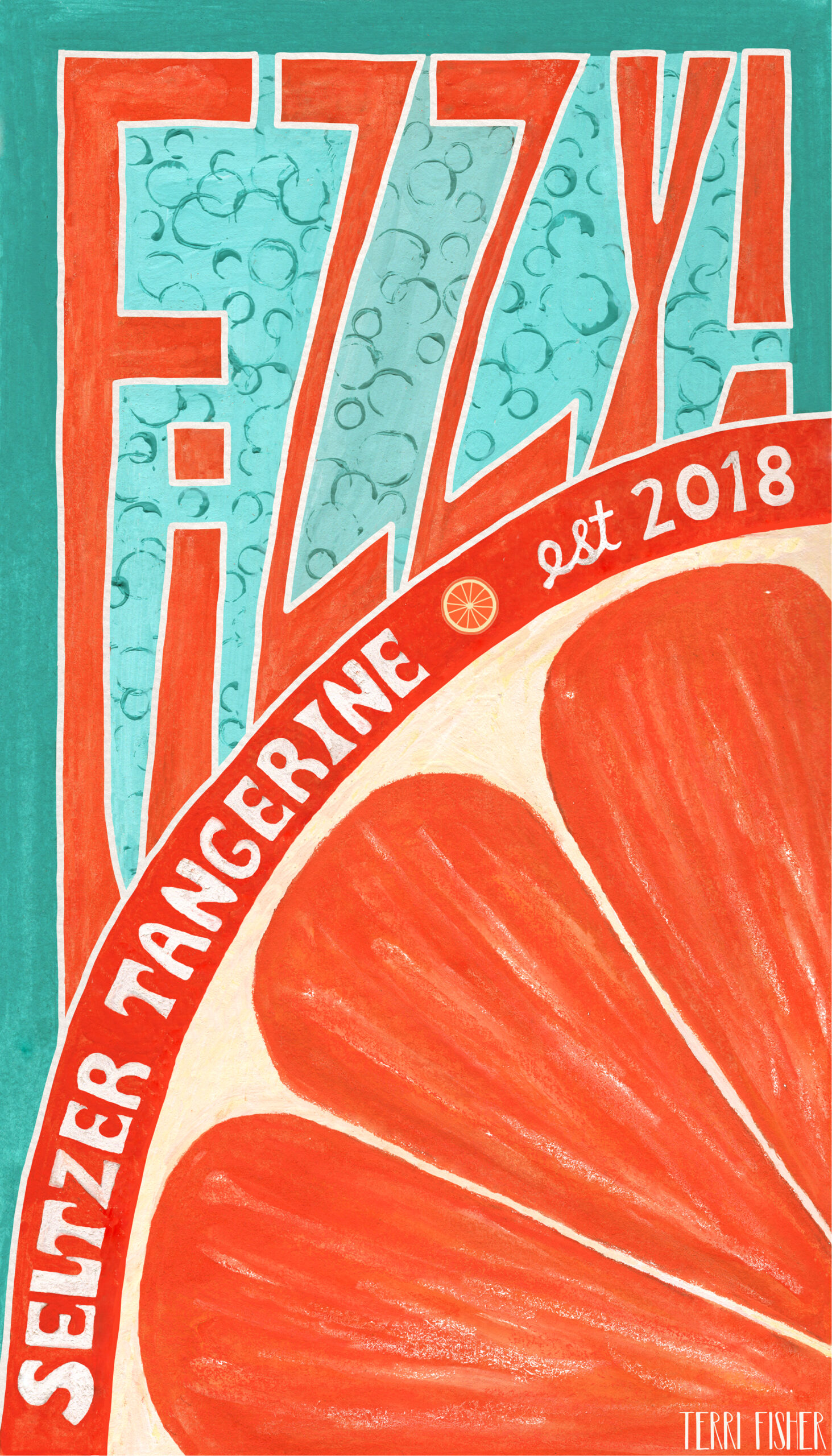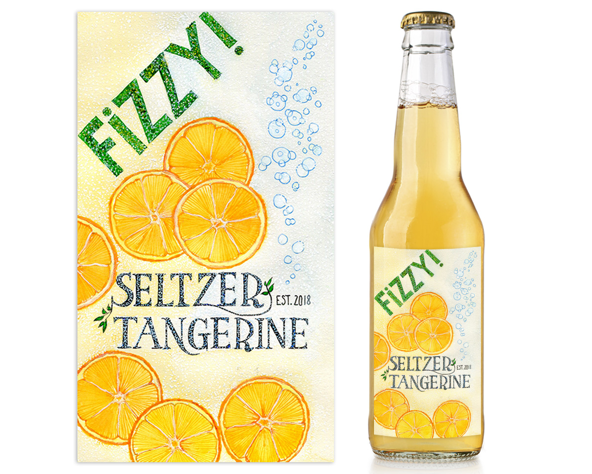 Title: Fizzy Seltzer Tangerine label || Name: Terri Fisher || Website/Social media