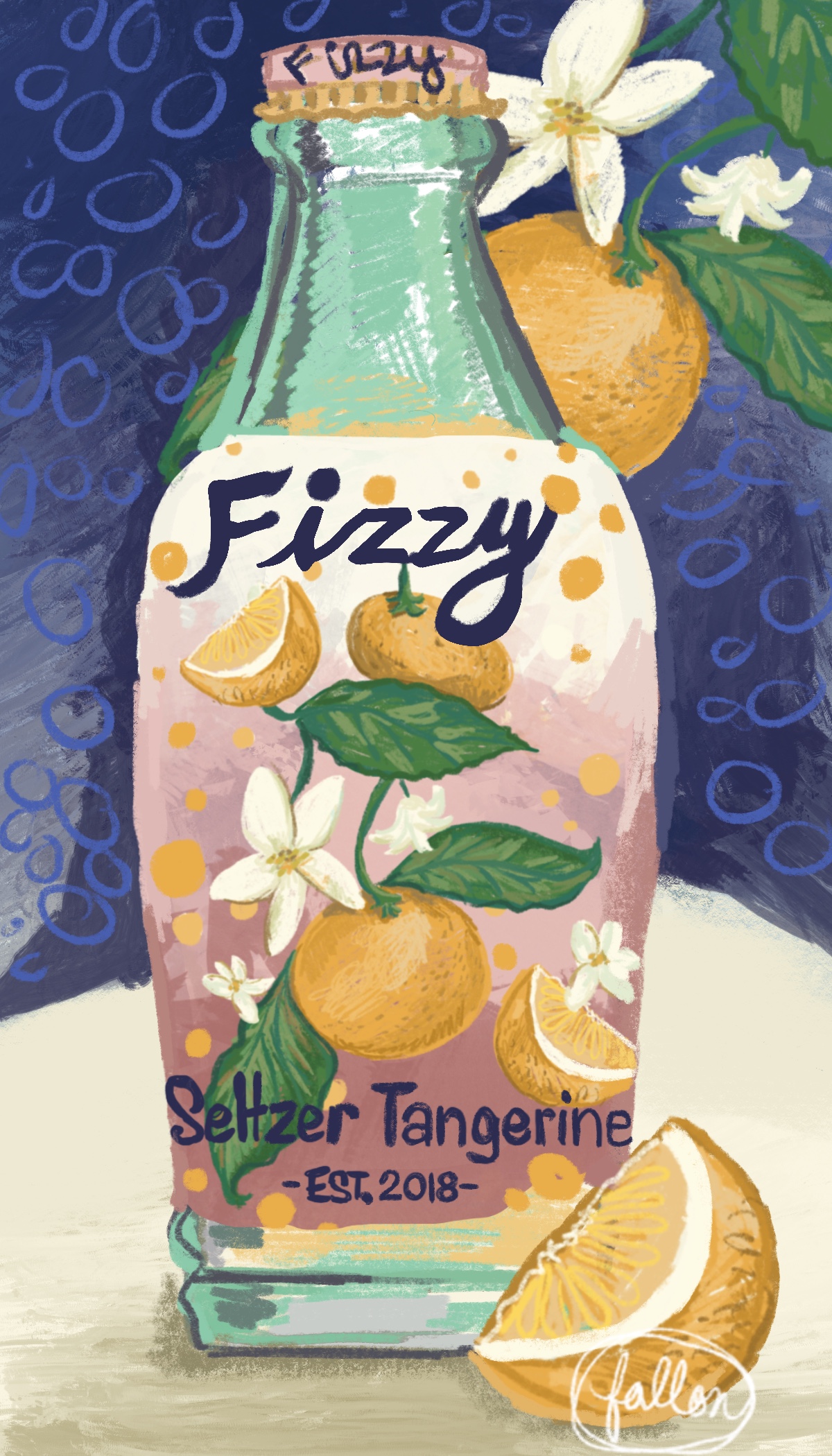 Title: Fizzy Selzer Tangerine || Name: Victoria Belcher || Website/Social media