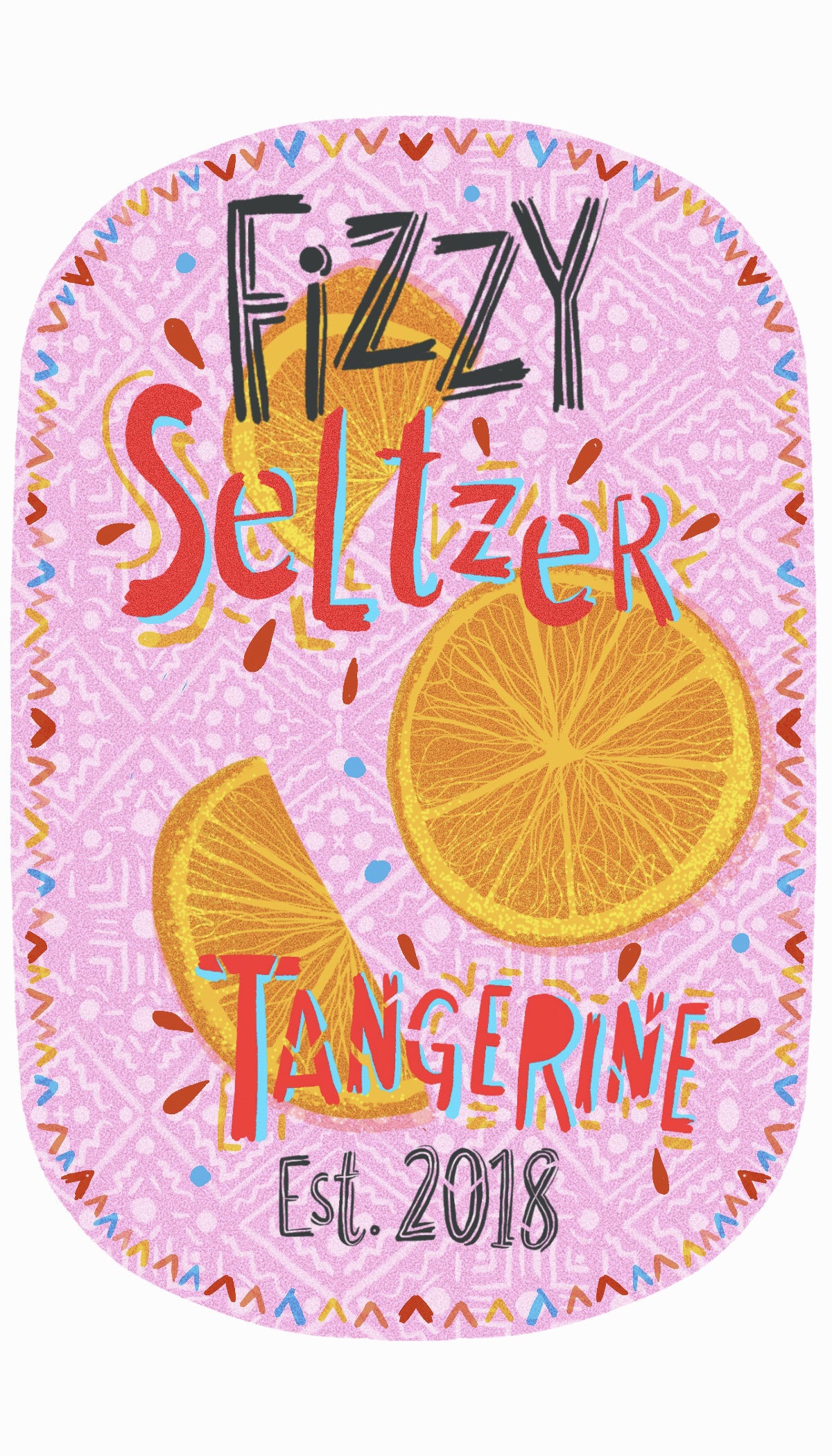 Title: Fizzy Seltzer : Citrus Tangerine Label Design || Name: Tina Schofield || Website/Social media