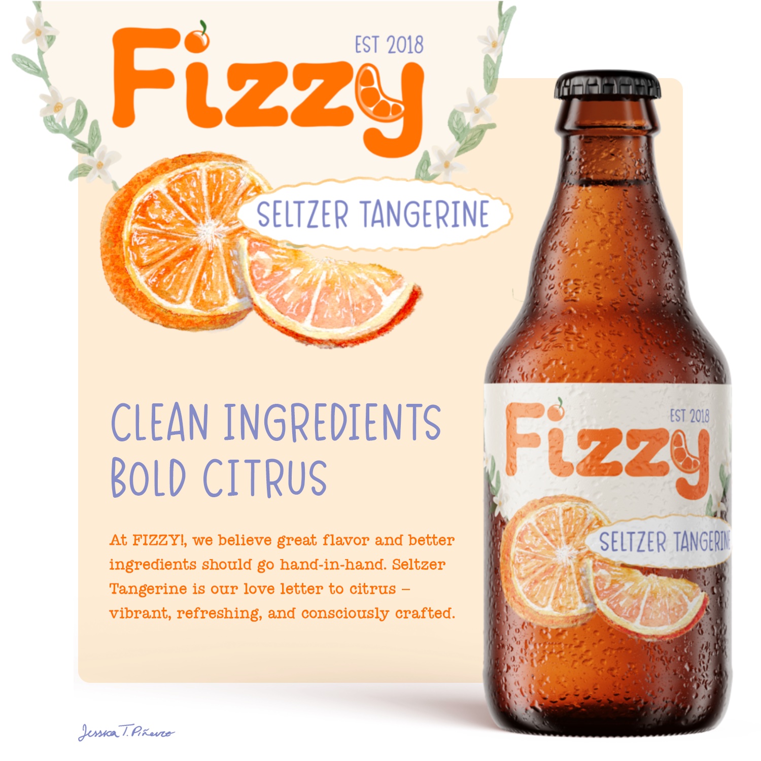 Title: Fizzy Seltzer Tangerine || Name: Jessica Pineiro || Website/Social media