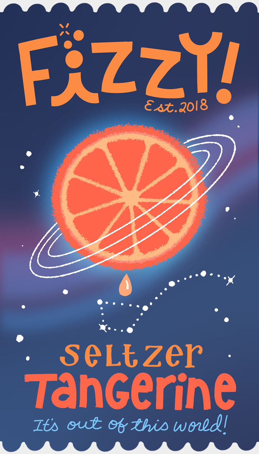 Title: Fizzy! Seltzer Tangerine - Out of This World! || Name: Kathleen Meloy || Website/Social media