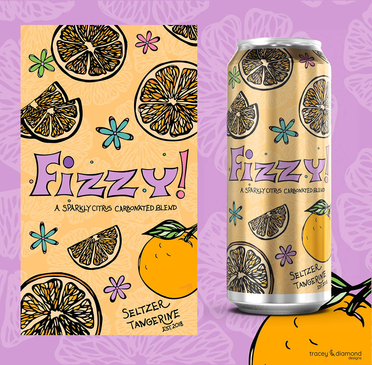 Title: Fizzy Seltzer Tangerine Label || Name: Tracey Diamond || Website/Social media