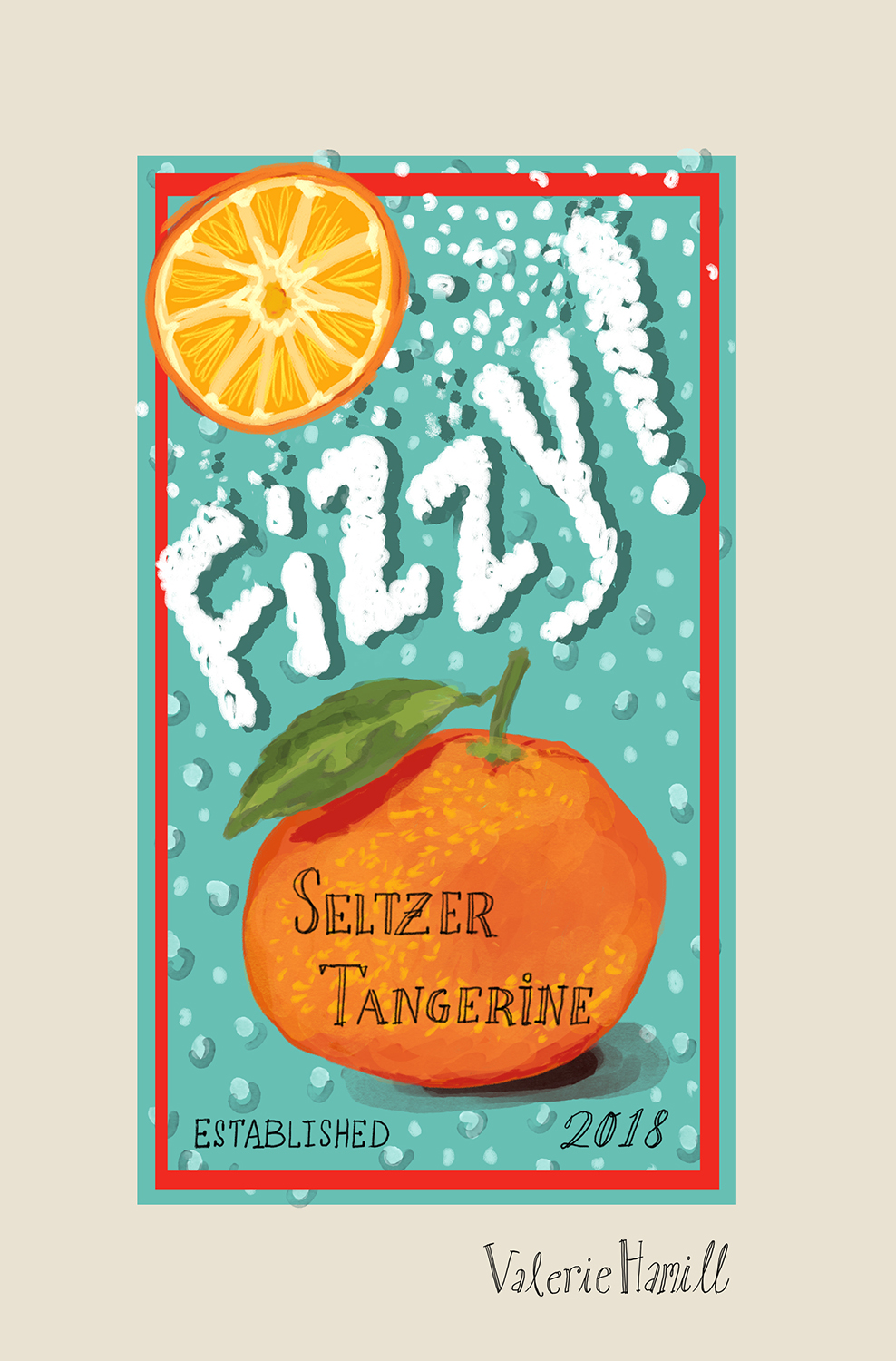 Title: Fizzy Seltzer Tangerine || Name: Valerie Hamill || Website/Social media