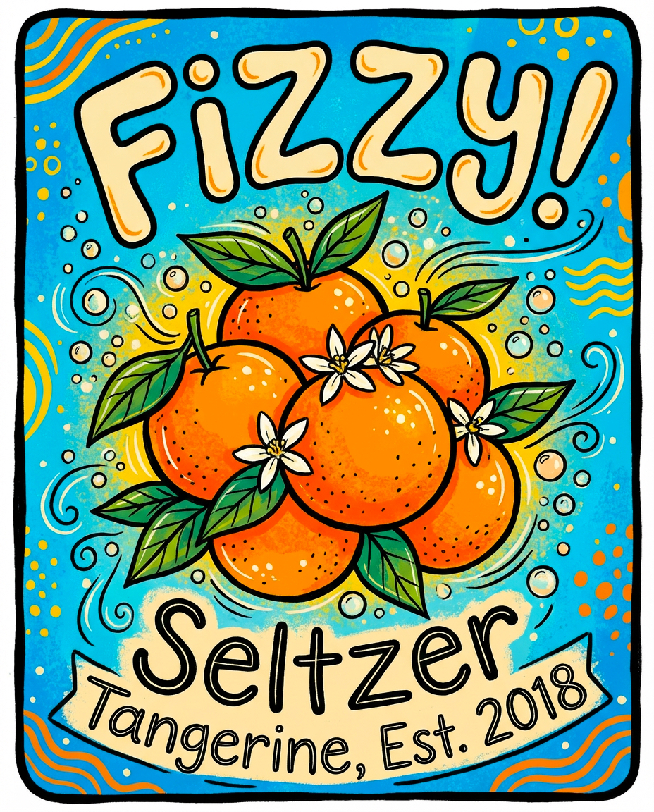 Title: Fizzy! Tangerine Seltzer Label || Name: ..... .... || Website/Social media